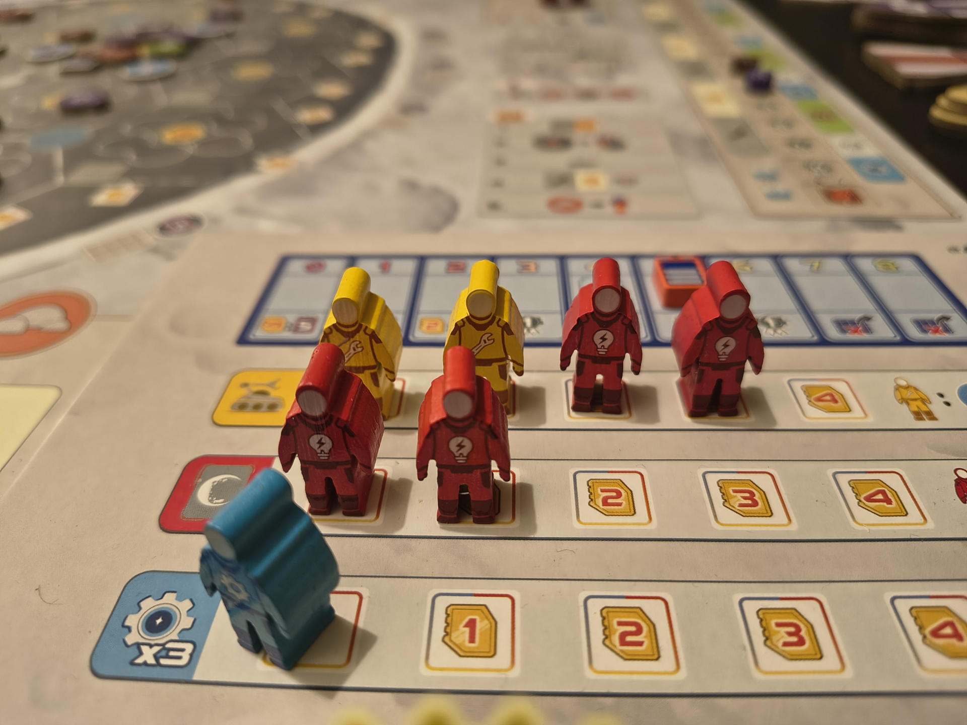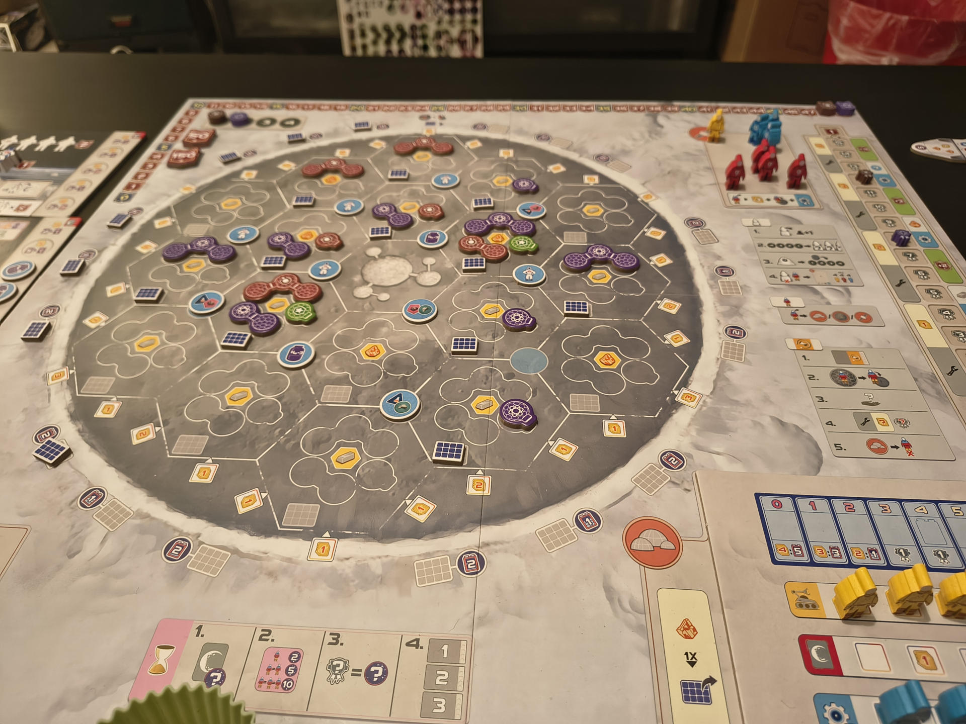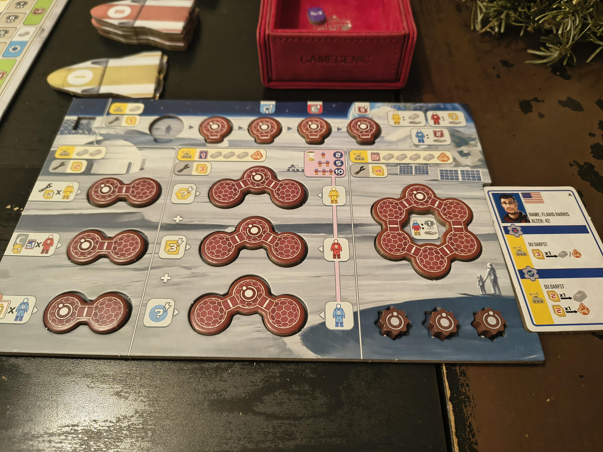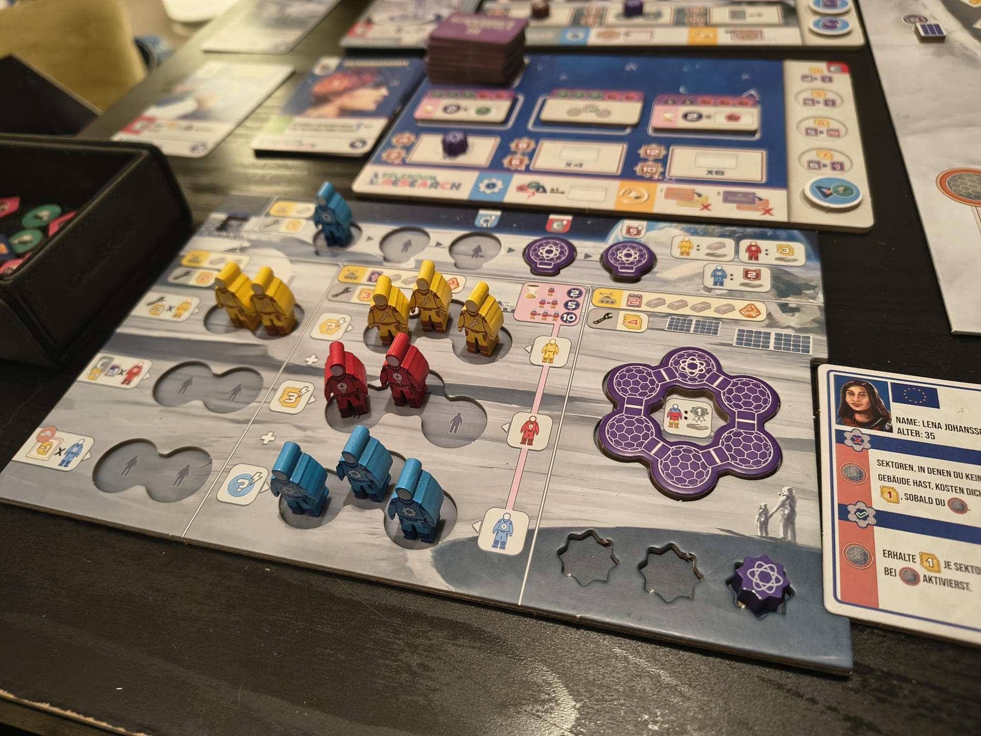 Für wen ist das Spiel was? Spieler, die gerne komplexe Aufgaben lösen und mit Worker Placement vertraut sind. Zum Einstieg in das Thema ist es glaube ich etwas zu kompliziert, da sollte man mit einfacheren Spielen beginnen. Wer hingegen das Weltraumthema mag und gerne seine Arbeiter in die Wüste schickt, um gegen Fremen und Sandwürmer... nein, Moment, das ist ein anderes Spiel!