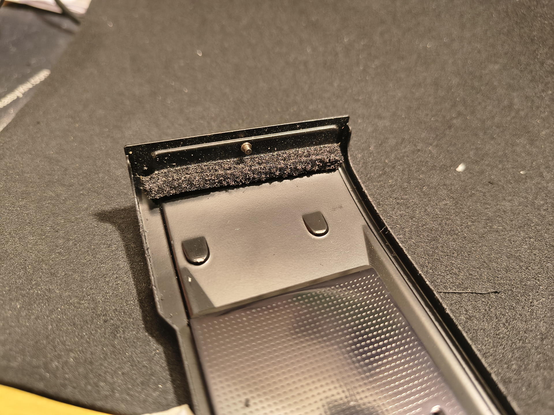 Aber da man die Rückwand glücklicherweise aushängen kann - was bei den alten Kameras der 1970er und 80er ja meist noch der Fall ist -, kam ich auch an die schweren Stellen gut dran. Der Schaumstoff hatte sich glücklicherweise noch nicht komplett in Schlodder zerlegt, sodass ich auch sehen konnte, wo original mal was aufgeklebt gewesen war. Diese Kamera braucht einiges an Dichtmaterial, scheints. Vor allem an der Rückwand sind noch an der Verschluss-Seite oben und unten zusätzliche Streifen eingeklebt gewesen. Ich weiß nicht, ob die tatsächlich nötig sind, aber ich habe sie alle 1:1 ersetzt. Better safe than sorry!
