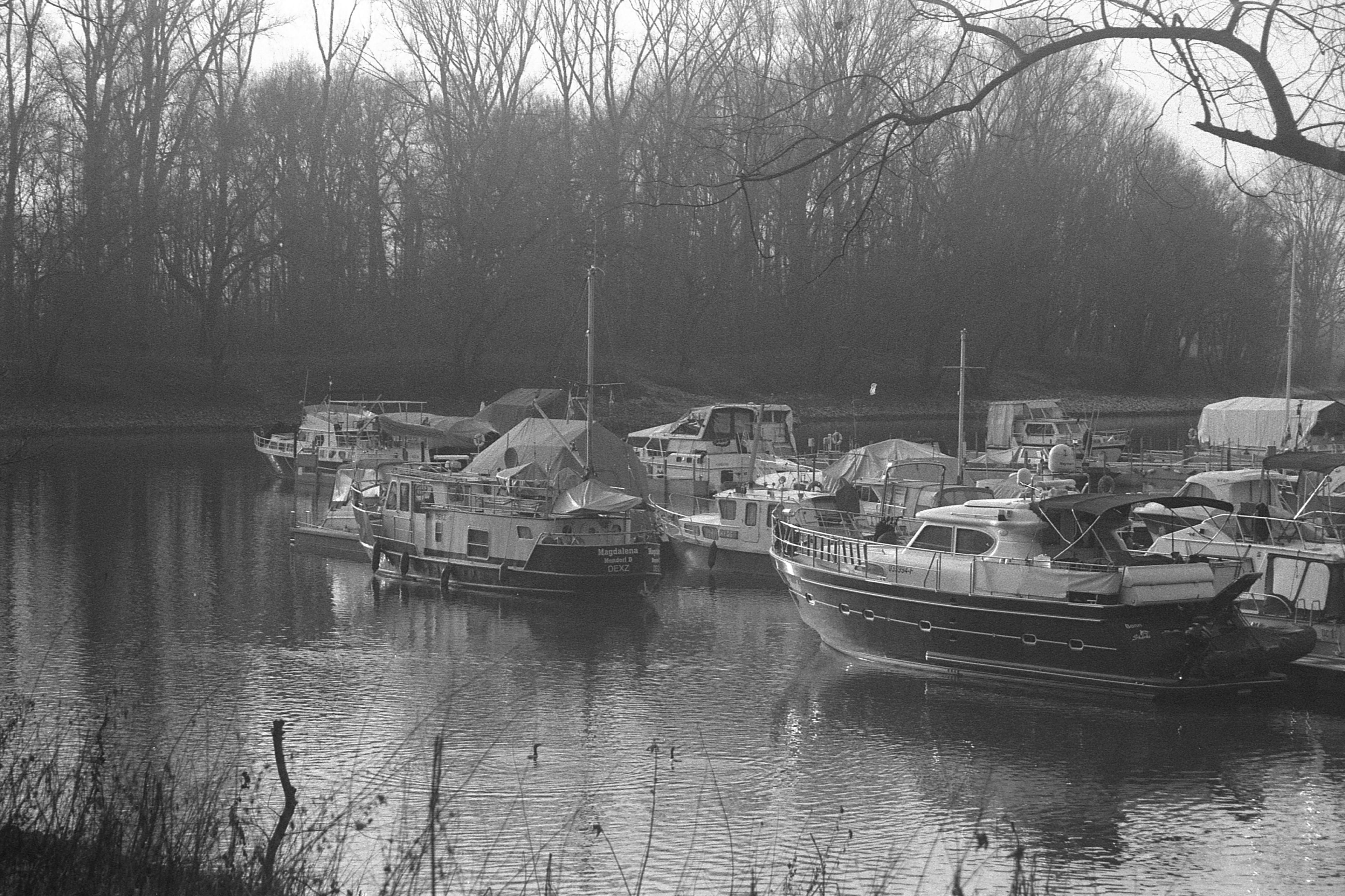 Schwarz-weiß und analog, Teil 331b: Mondorfer Hafen mit dem AT-X