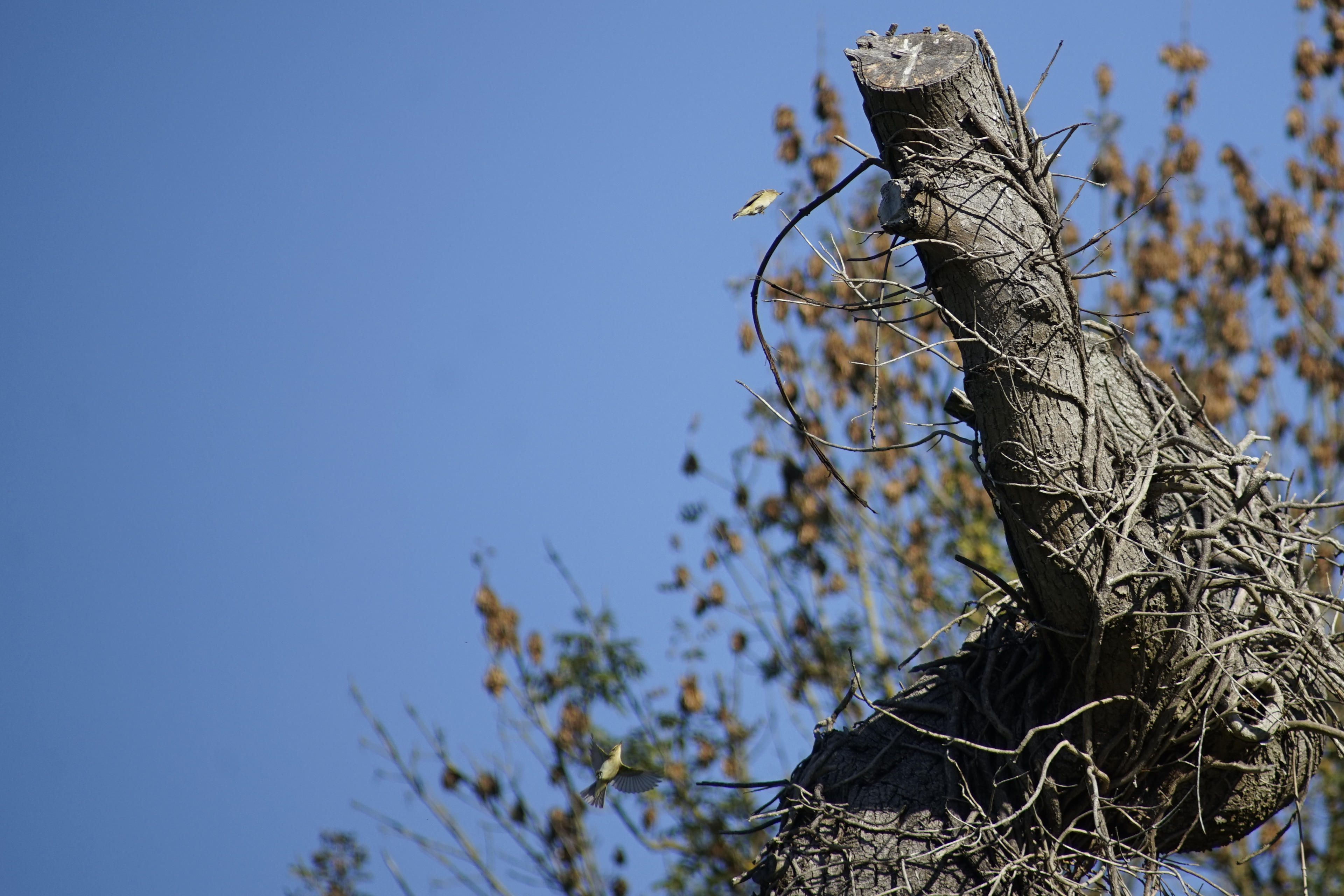 Dann habe ich mich langsam an den alten, knorrigen Baum angeschlichen, auf dem die Vögelchen sich zwischenzeitlich niedergelassen hatten. Wie gesagt, da hätte ich jetzt so das doppelte bis dreifache an Brennweite gebrauchen können, aber solange man die Tierchen noch erkennen kann, geht es auch so. Ich bin halt doch nicht direkt so der Wildlife Phoptographer und habe nicht das passende Equipment.