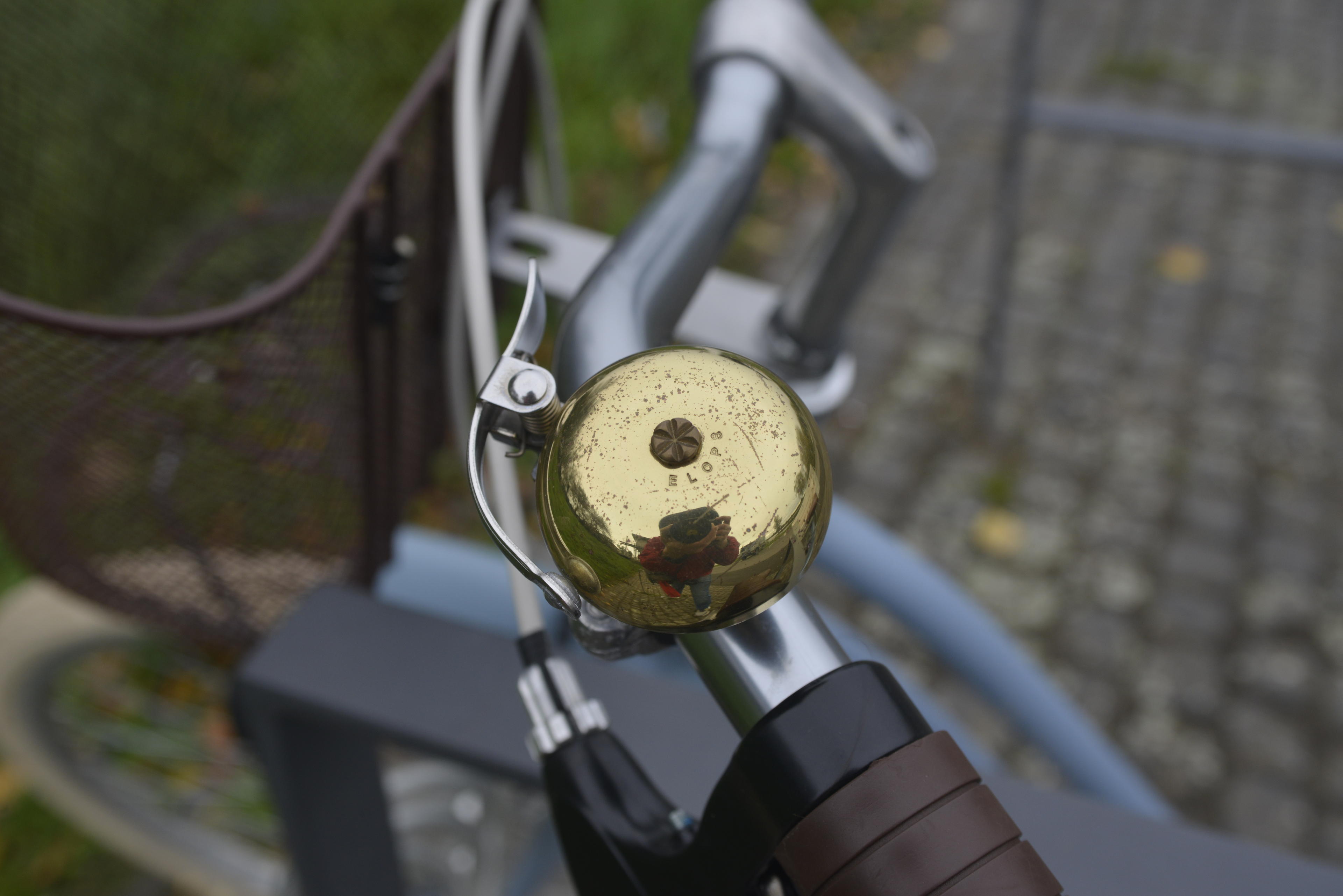 In der Klingel des blauen Fahrrads - da war sie wieder, meine Obzession mit zweirädrigen Fortbewegungsmitteln - habe ich dann sowas wie ein Selbstportrait versucht. Da kommt jedenfalls die Makro-Funktion des 35-70/2,8 Nikkors sehe gelegen. Der sowieso schon sehr weitwinklige Eindruck wird noch durch die Wölbung der Klingel verstärkt. Wo bitte ist denn da mein Spielbein? Irgendwo ganz da hinten! Ich wusste gar nicht, dass ich so lange Beine habe!