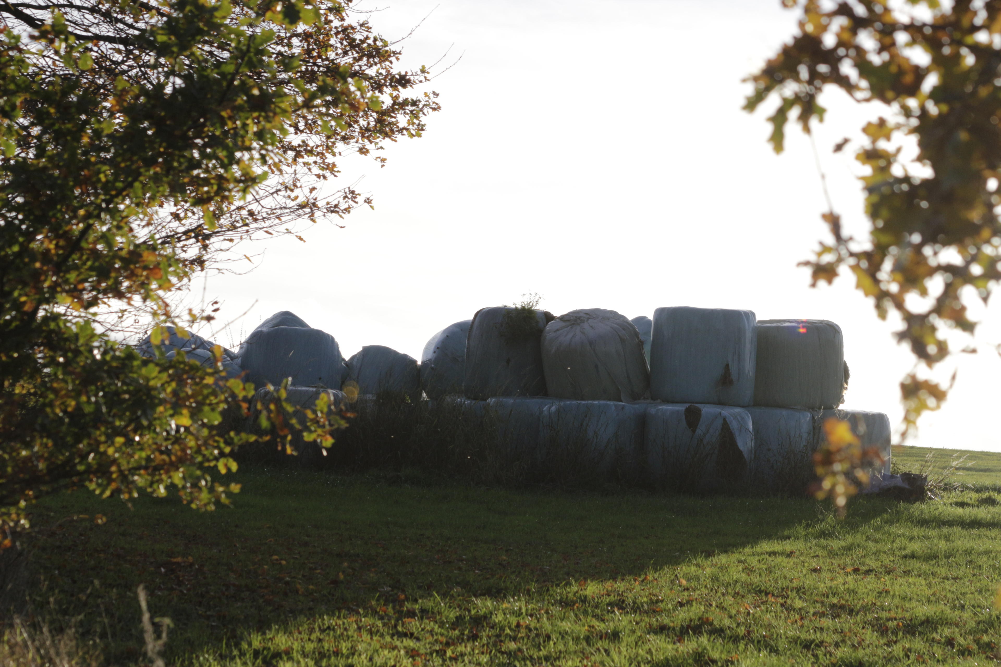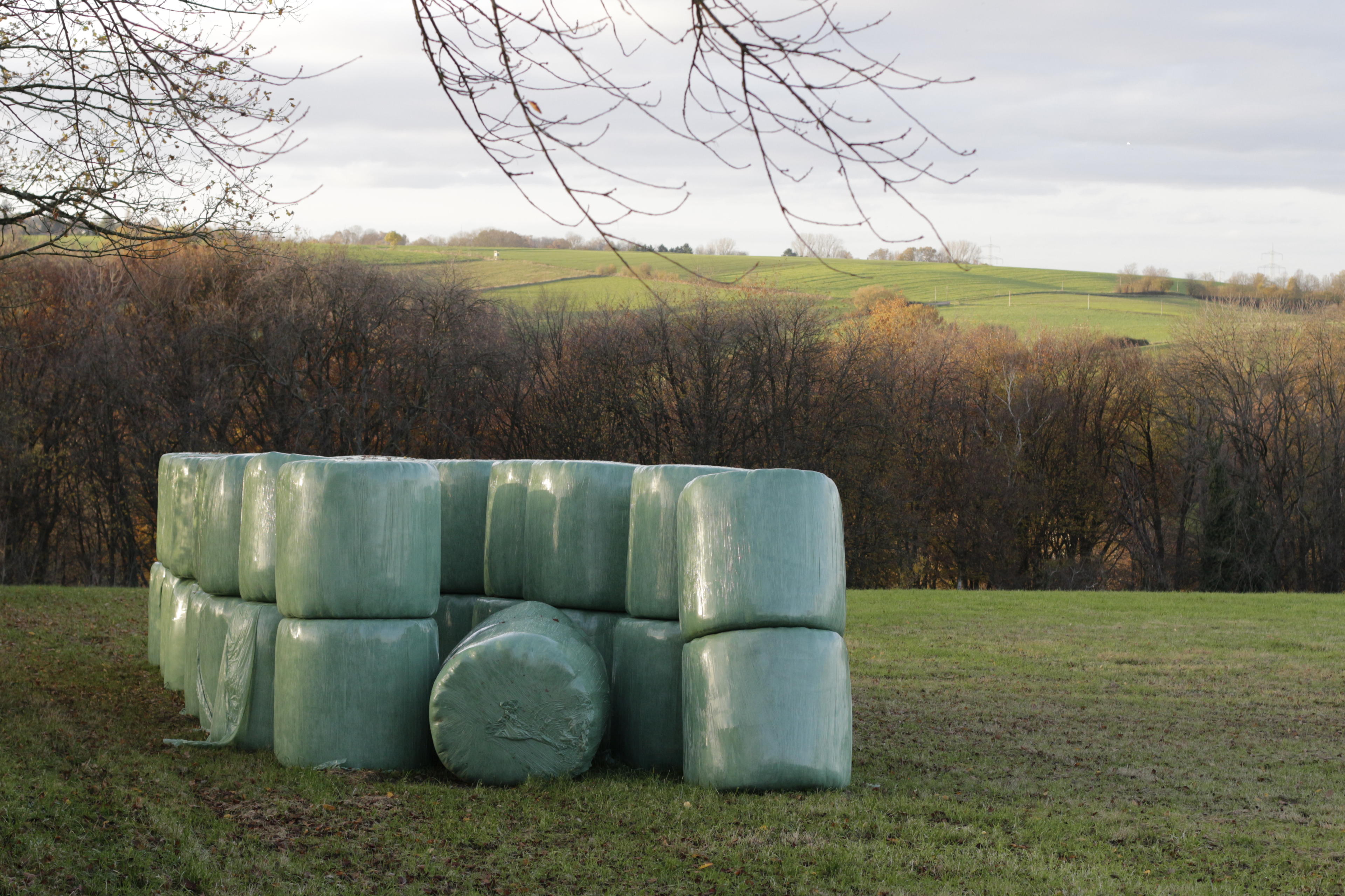 So, dann arbeiten wir die Liste da oben auch direkt mal in dieser Reihenfolge ab: Es ist Herbst und überall liegen noch die Strohballen in ihren Plastikverpackungen rum. Vor allem aber auch die vom letzten Jahr. Wie lange kann man das eigentlich noch benutzen? Ich mein, ja, das sind trockene Halme von Gras, aber schimmelt das in dem Plastik nicht irgendwann? Als Einstreu unter den Kühen wird es wohl noch reichen... Ich hab ja keine Ahnung. Landwirte hier anwesend?