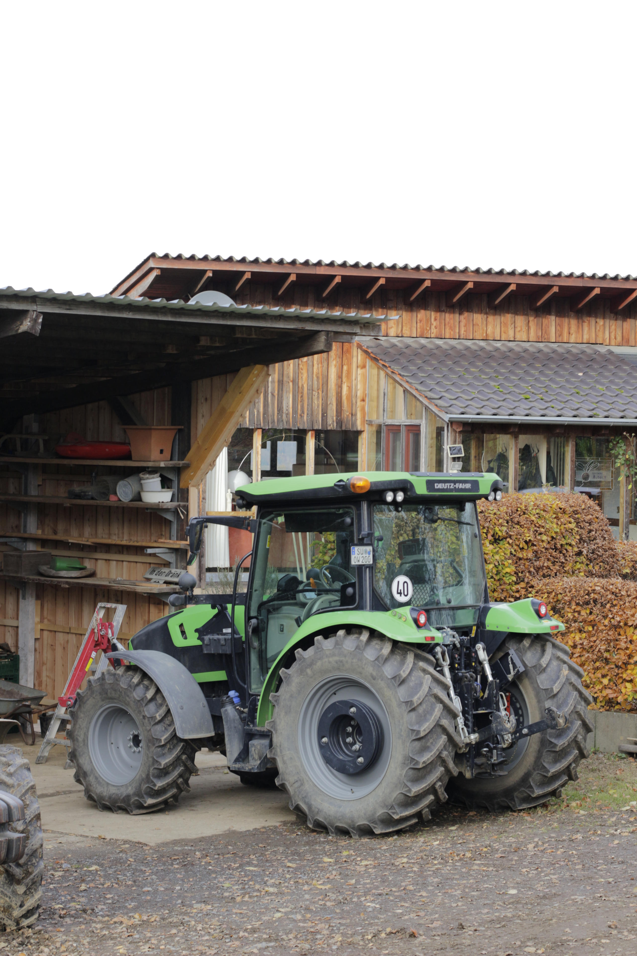 Naja, das Wetter war eh nicht so, dass man sich gerne niedergelassen hätte. Aber schon ganz praktisch für die Besitzer, dass sie ihren Laden direkt an einem der Siegwanderwege haben. Ansonsten noch Schubkarre und Trecker fotografiert, Dinge, die ich ja auch nie in Ruhe stehen lassen kann.