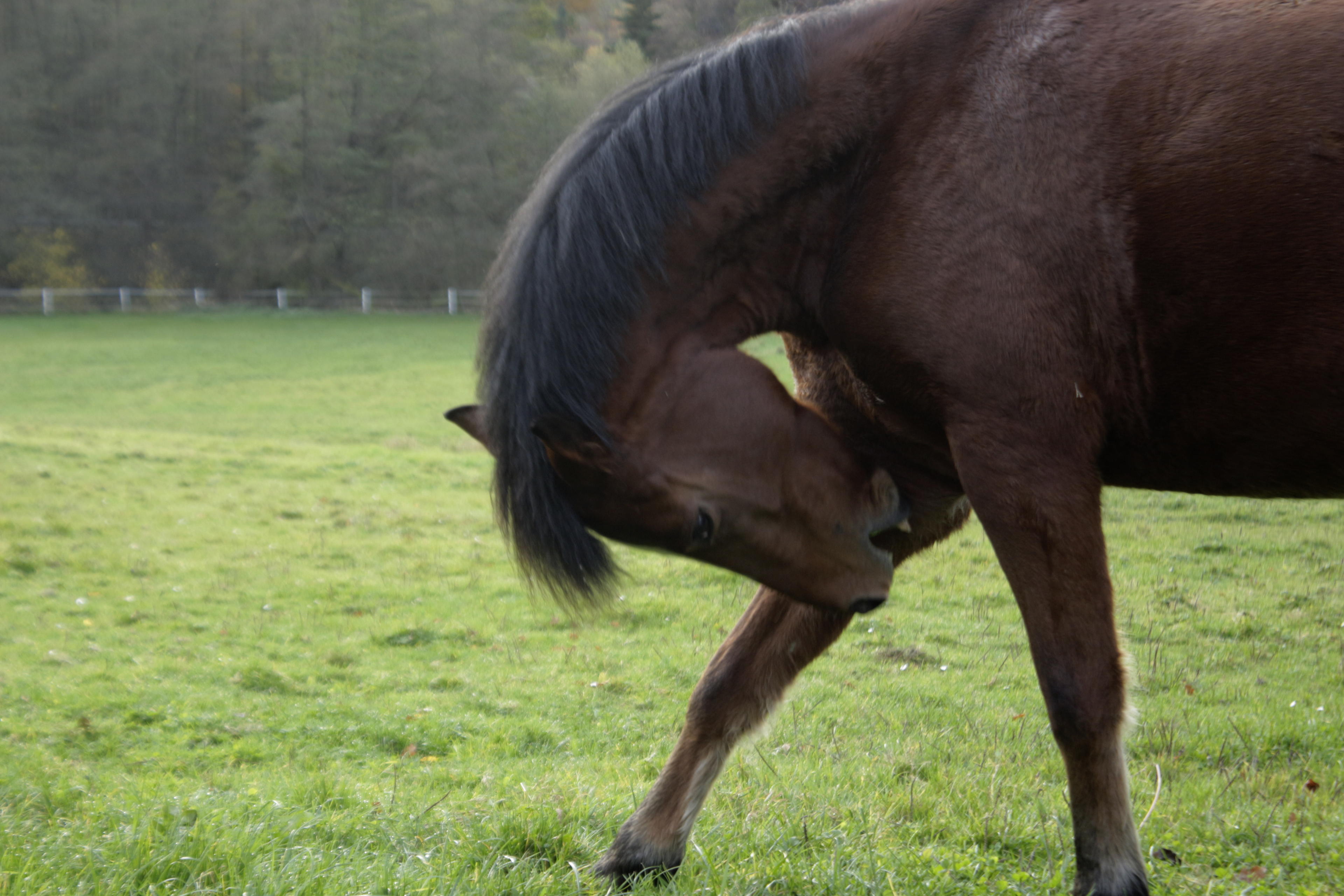 Wieder ein guter Test für die Makro-Funktion. Was aber nicht so gut funktioniert, ist der Blick direkt in den Sonnenuntergang. Ich nehme aber an, das liegt dann tatsächlich am Pilz unterm Frontelement, das verschmiert alles ein bisschen. Die maximale Brennweite reicht auch nicht unbedingt aus, die Katze auf dem Rand vom Beton-Pool zu fotografieren. Schade eigentlich. Für Pferde, die näher stehen, geht es aber ganz gut. Aber eben nur tatsächlich die, die nah am Zaun sind. 55mm ist selbst bei 1,6x Cropfaktor eben nur ~90mm äquivalent.