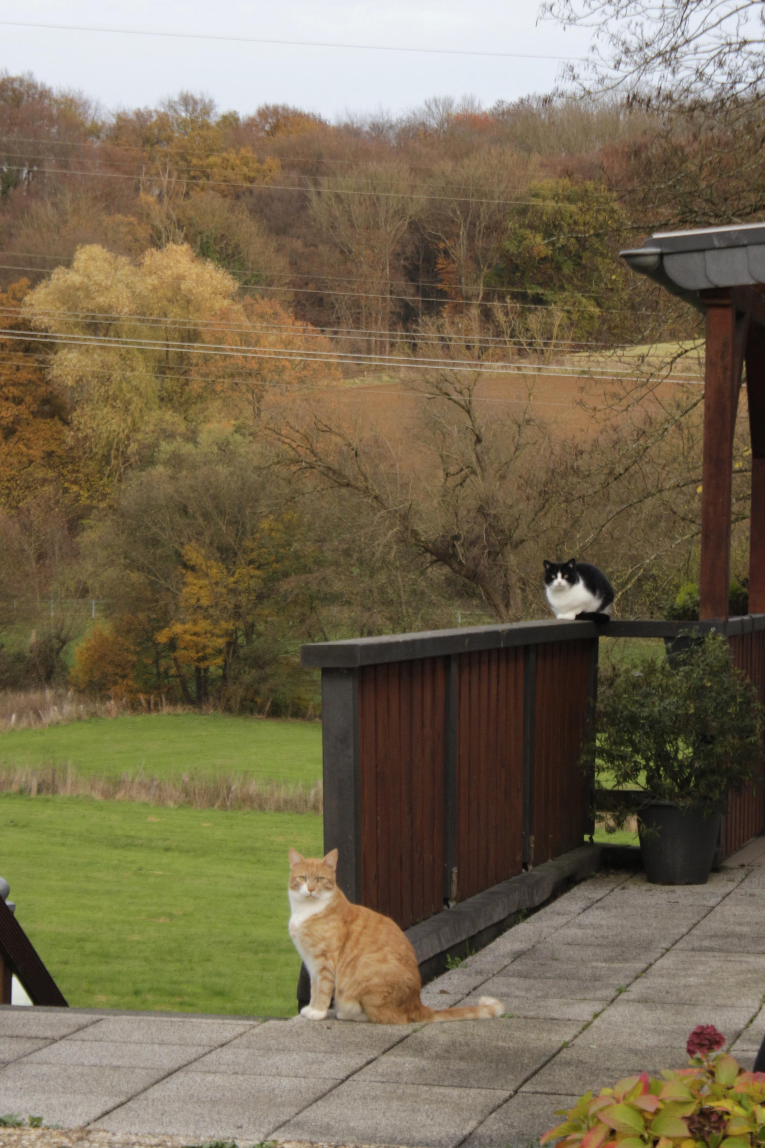Dann durchs Dorf nach Hause. Da hatte ich dann noch mal die Gelegenheit, Katzen zu fotografieren. Die warteten schon auf ihre Menschen, schients. Waren etwas verwundert, als ich sie fotografiert habe und ihnen dann nicht mal die Haustür auf gemacht habe. Aber niedlich. Ich kann nichts dafür, ich bin ein Katzenmensch.