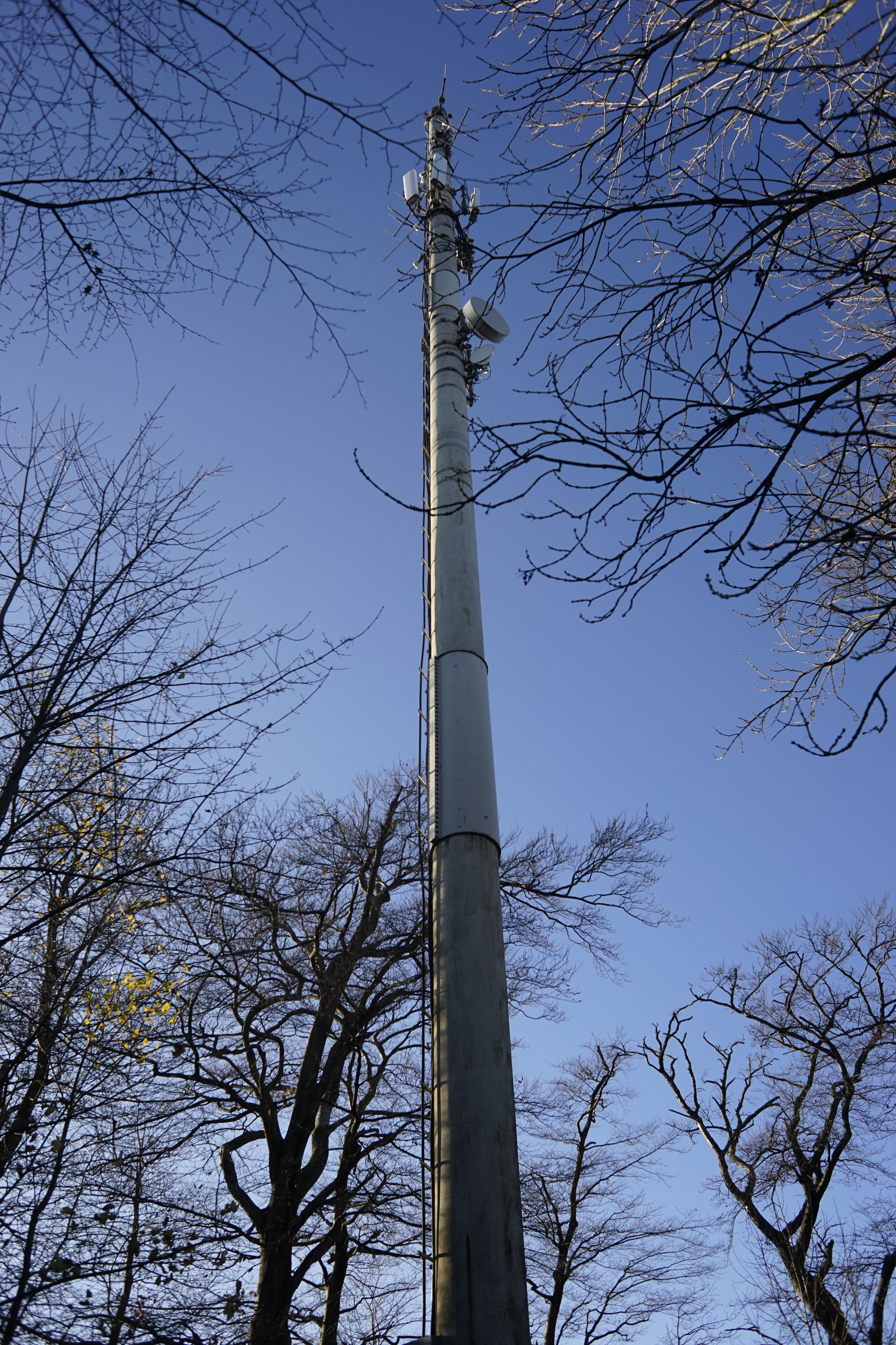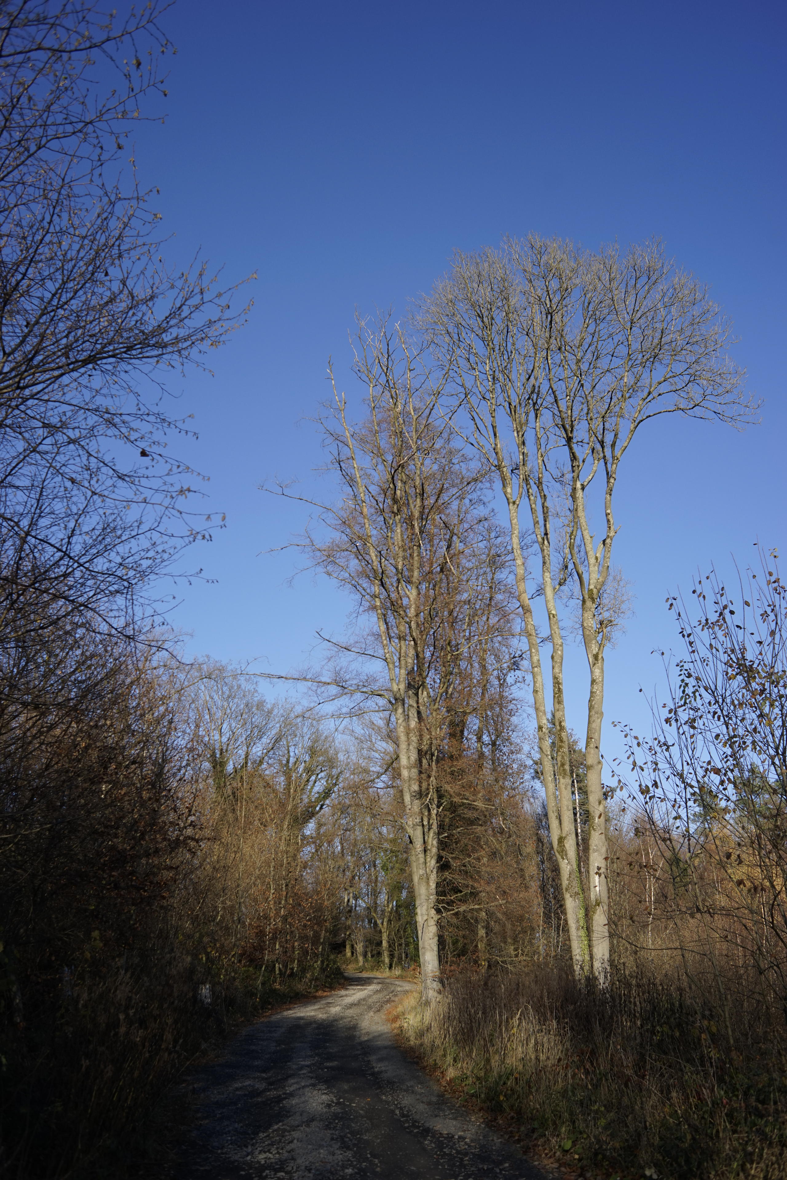 Wenn man nicht so wie ich an jeder Ecke stehen bleibt, kommt man recht schnell aus Heisterbacherrott raus. Dann hat man schnell einen sehr guten Blick auf das Ziel unseres Ausflugs: Den Großen Ölberg mit seiner Restauration oben neben dem Sendemast. Auch in Herbst und Winter macht das Siebengebirge mit seinen Wäldern was her, wenn das Wetter denn gut ist. Ich hätte vielleicht doch mal wieder eine länger Brennweite mit nehmen sollen, wenn ich das so sehe.