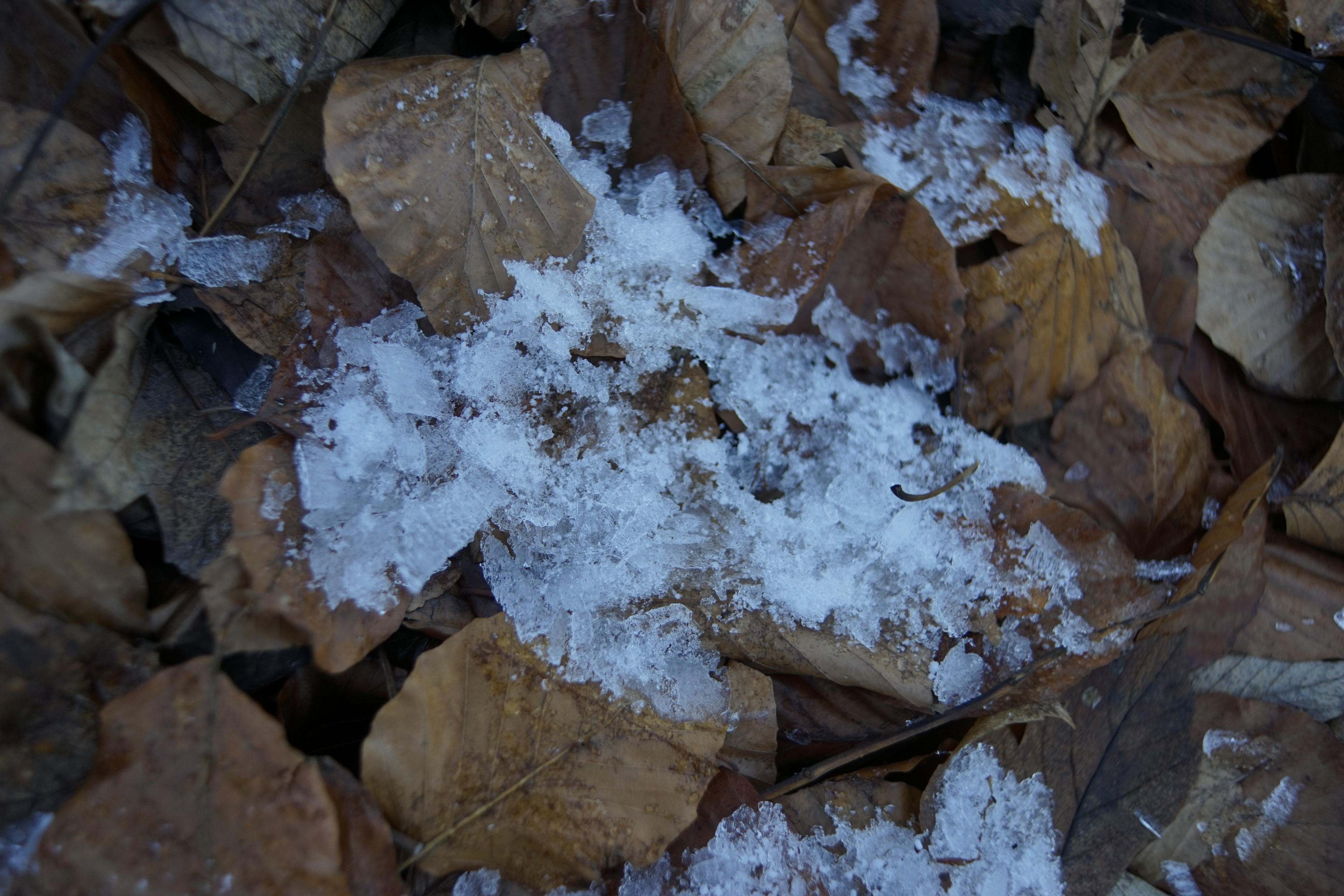 Da es auch hier oben recht kühl war, haben wir uns recht flott für den Abstieg entschieden. Nicht nur das, auch das Essen hat so kräftig aus der Küche heraus geduftet, dass ich Hunger gekriegt habe. Deswegen noch schnell ein paar Blumen mit dem Tele bearbeitet, das Vogelhaus eingepackt und die Lampe im Vorgarten ebenfalls, aber dann auch wirklich los, durch den Frost der letzten Nacht, der auf der Rückseite tatsächlich nicht getaut war. Scheinbar schafft es in dieser Jahreszeit die Sonne nicht mehr über den Berg. Runter den anderen Weg genommen, der leider sehr steinig ist und zudem von Herbstlaub verdeckt, sodass wir erst mal an der Abzweigung vorbei gelaufen sind, weil wir den gar nicht wahrgenommen hatten, und dann habe ich mir so richtig meine Wanderstiefel gewünscht. Das Profil an meinen Schuhen ist auch nur noch so mäßig. Früher hat sowas mal länger gehalten! Musste ich jedenfalls aufpassen, mich nicht auf den Popo zu setzen, also eher keine Fotos gemacht.