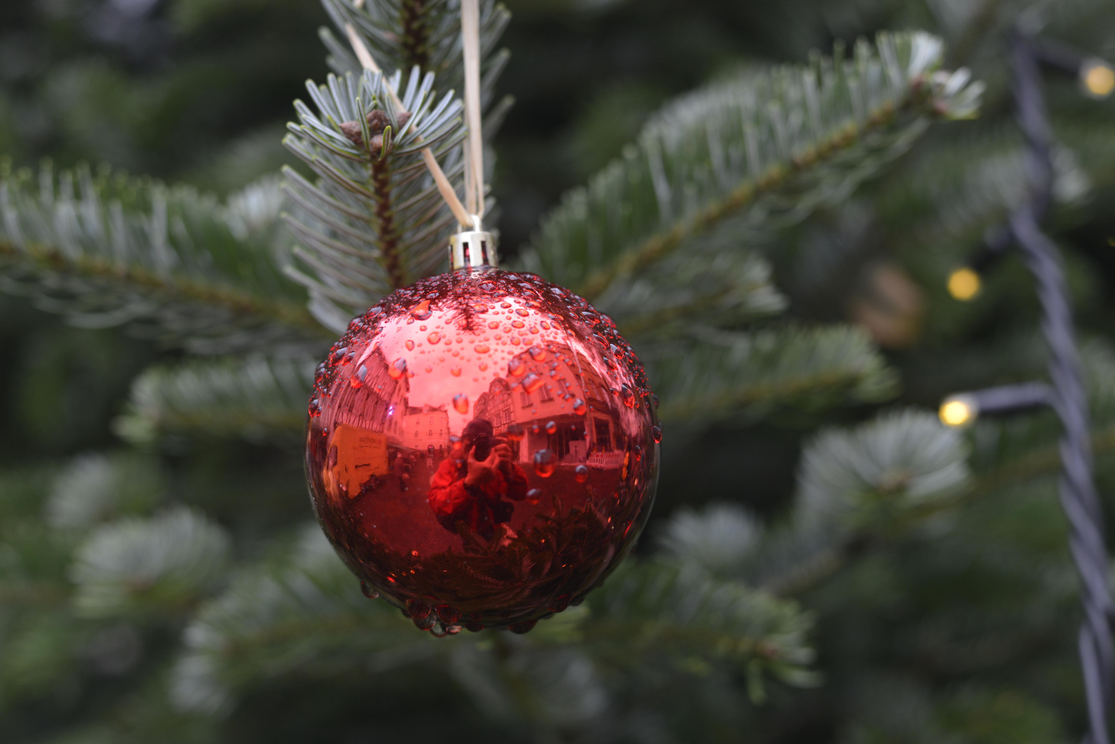 Auf dem Marktplatz war dann jedenfalls der Weihnachtsmarkt. Der bestand aus ca. fünf Fressbuden oder Glühweinständen und etwa der gleichen Anzahl Schnickschnack-Verkäufern. Ich bin da in den letzten Jahren irgendwie mehr gewohnt, muss ich ehrlich mal sagen. War jetzt nicht so richtig was los, keine tanzenden Bären, kein brummendes Leben. Also, so wenig, dass ich da nicht mal Fotos von gemacht habe, außer den üblichen am Rande, von Kugeln am Weihnachtsbaum etwa. Dabei hatte ich zur Feier des Tages mal die D800 ausgepackt, damit die Akkus auch mal benutzt werden. Die ist ja schwer, vor allem mit dem Hochkantgriff. Habe mich so an die kleine Sony gewöhnt, was das Gewicht angeht.