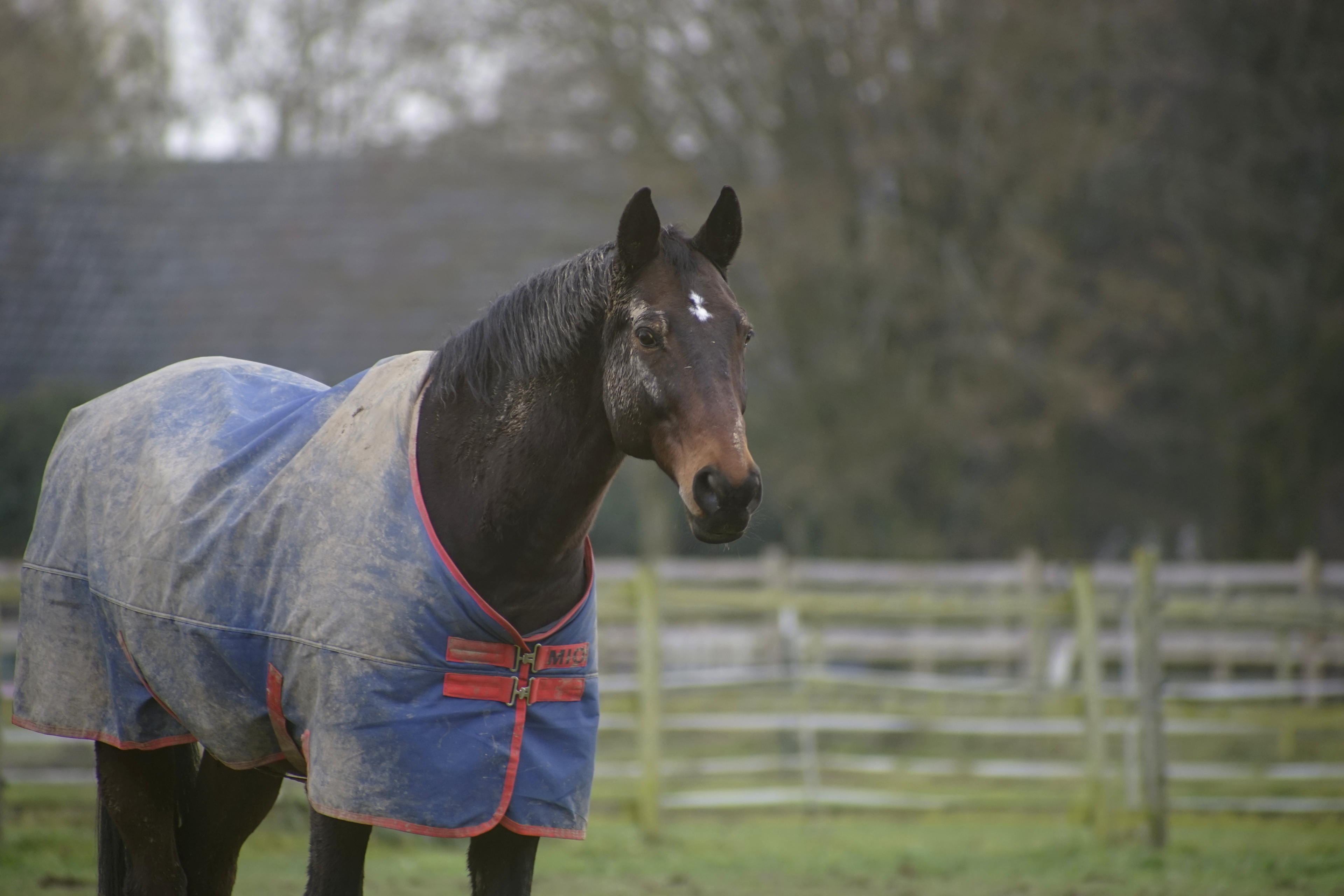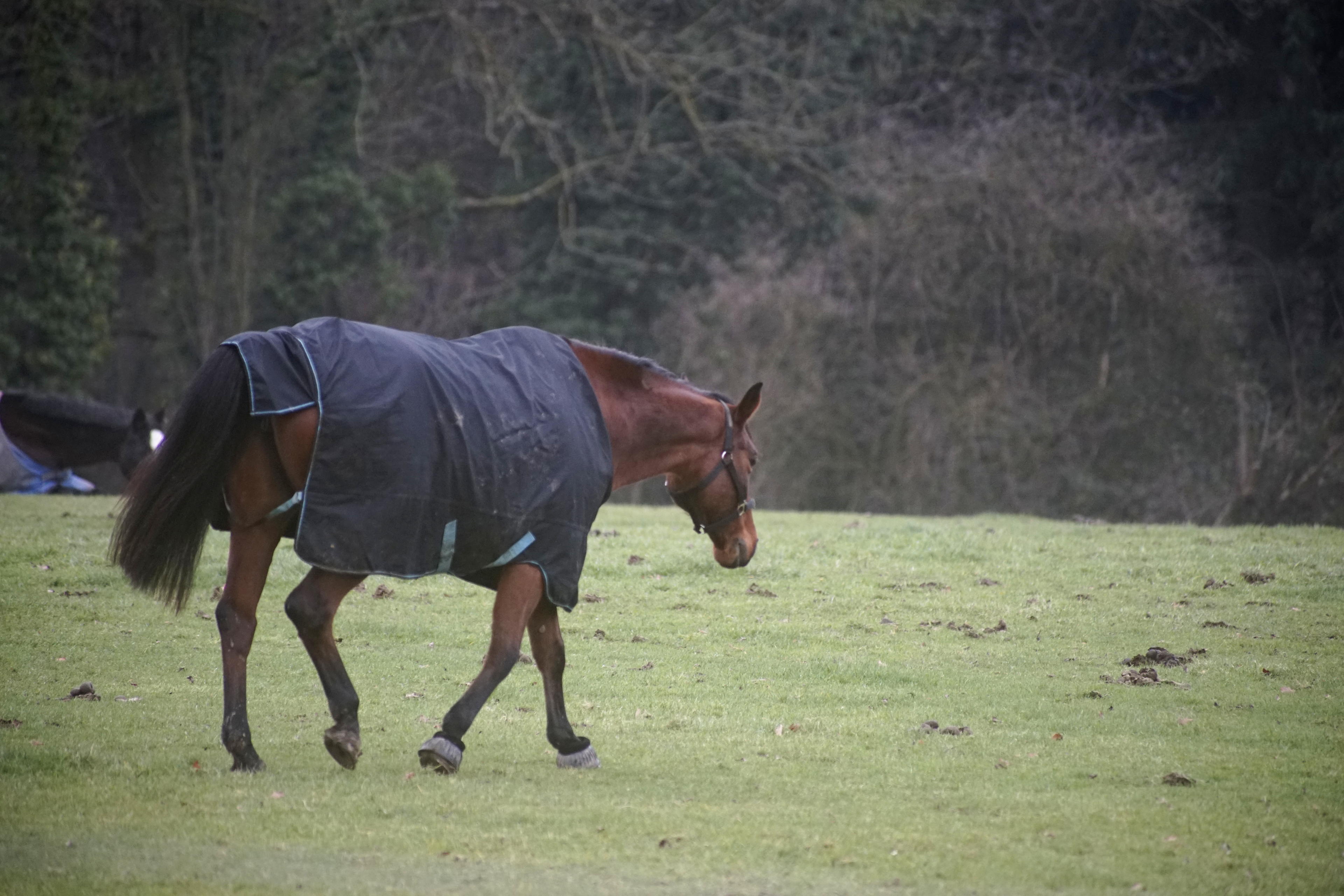 Dann steht man aber endlich zwischen all den Pferden, die hier oben zu dem Reiterhof gehören. Wie man sieht, war es eher nass-matschig die letzten Tage und das haben die Damen und Herren auch direkt mal ausgenutzt, um sich im Schlamm zu wälzen. Da hilft auch kein Jäckchen, die sind einfach schmuddelig! Gut, so eine schöne dicke Schlammschicht hält warm und zugleich die Viecher fern. Wobei, jetzt im Winter sind ja eher weniger Bremsen, Fliegen und sonstige Beißinsekten unterwegs.