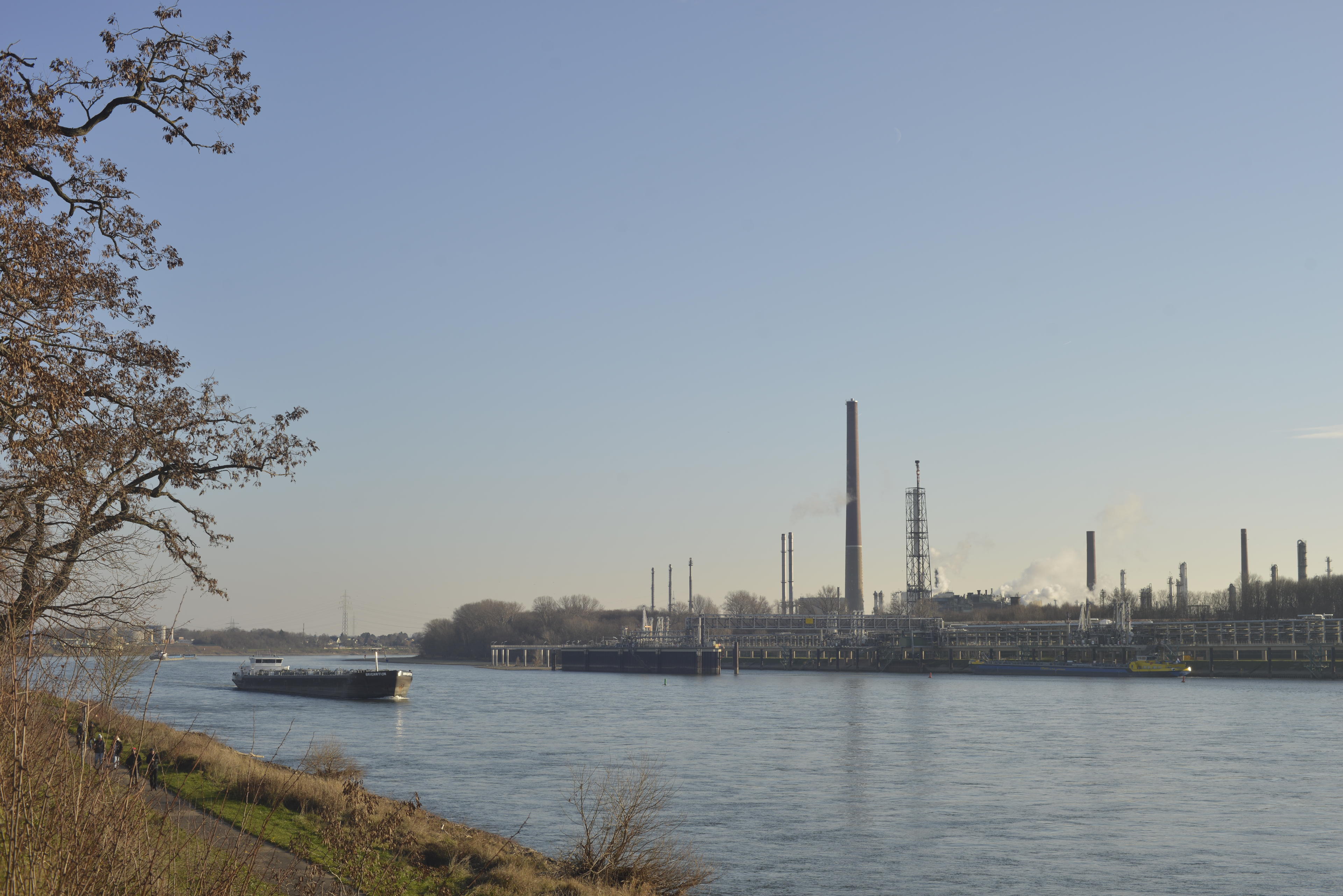 Ansonsten Wesseling und Industrie und sowas auf der anderen Seite. Die üblichen Raffinerie-Bilder. Und dann hat die Blue Jenny auch noch gewendet. Die hatte da wohl gerade neue Ladung aufgenommen. Oder was geliefert. Oder so. Jedenfalls ging es jetzt zurück nach Norden. (Ist die Blue Jenny eigentlich die Schwester der blauen Elise? Kennen die Blagen das heutzutage eigentlich noch? Wissen die, wer die blaue Elise ist?)