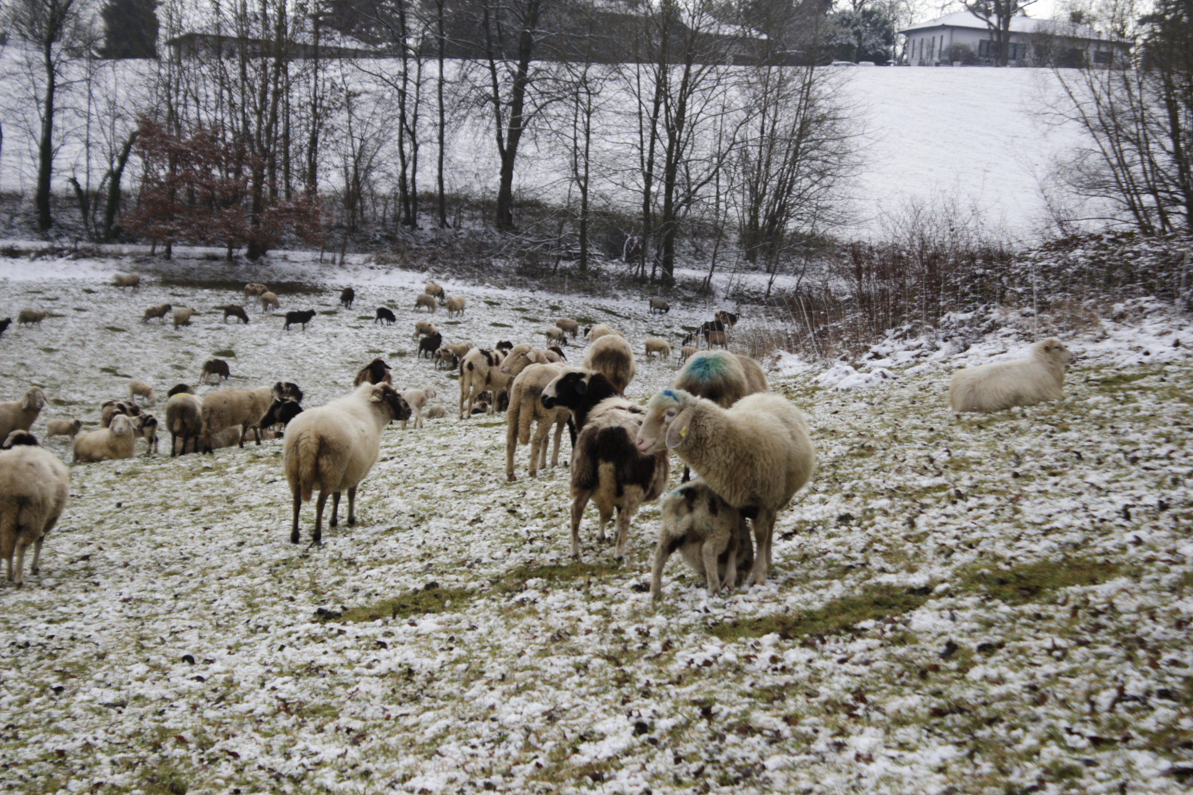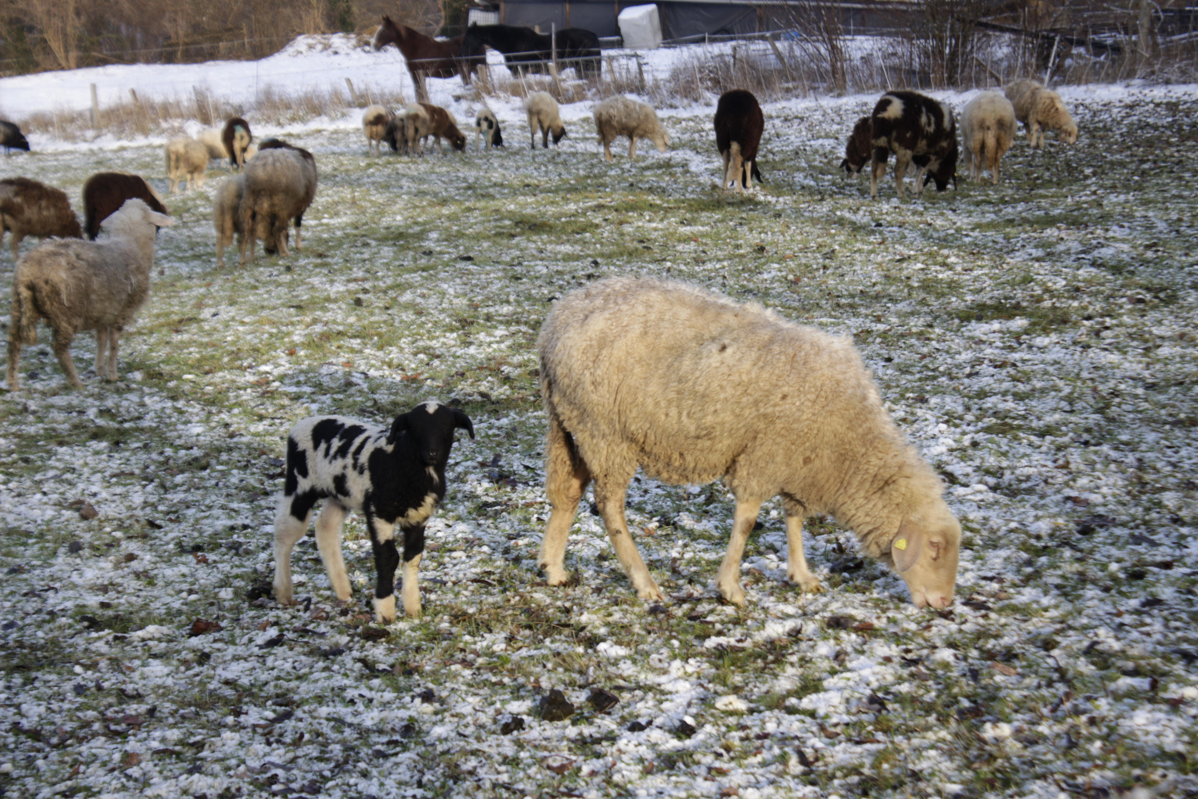 6.1.: Schafe! Überall Schafe! Eigentlich wollte ich mir nur ein bisschen in der Mittagspause die Beine vertreten und ich hatte dafür auch nur die absolute Basisausrüstung dabei: Die Canon 700D mit dem Wegwerf-Normalzoom vom Flohmarkt. Wenn der Pilz noch mal nass wird, wenn es plötzlich anfangen sollte zu schneien, dann ist das nicht so schlimm. War aber ein Fehler, denn: Schafe! Überall Schafe! Deswegen sind die Bilder jedenfalls heute von nicht allzu hoher technischer Qualität. Vielleicht hätte ich ja doch noch mal die 100 Meter zurück gehen sollen, um eine echte Kamera zu holen!