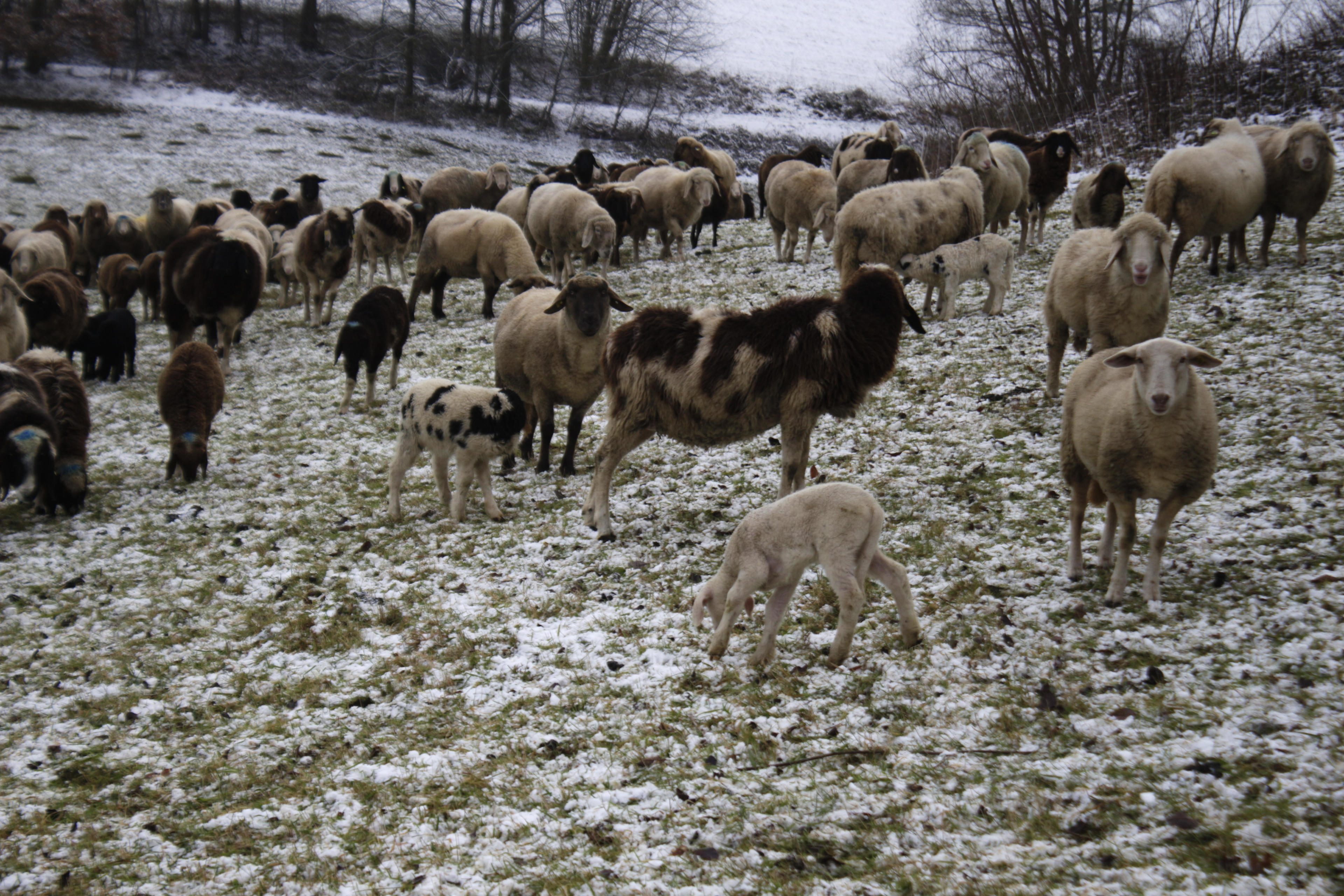 Um die aufzunehmen, bin ich dann noch über den Zaun gestiegen. Also, nicht über den 12V geladenen Weidezaun, über den alten, kaputten Stacheldraht, der seit Jahrzehnten darnieder liegt. Aber die Schafe! DIE SCHAFE!!!