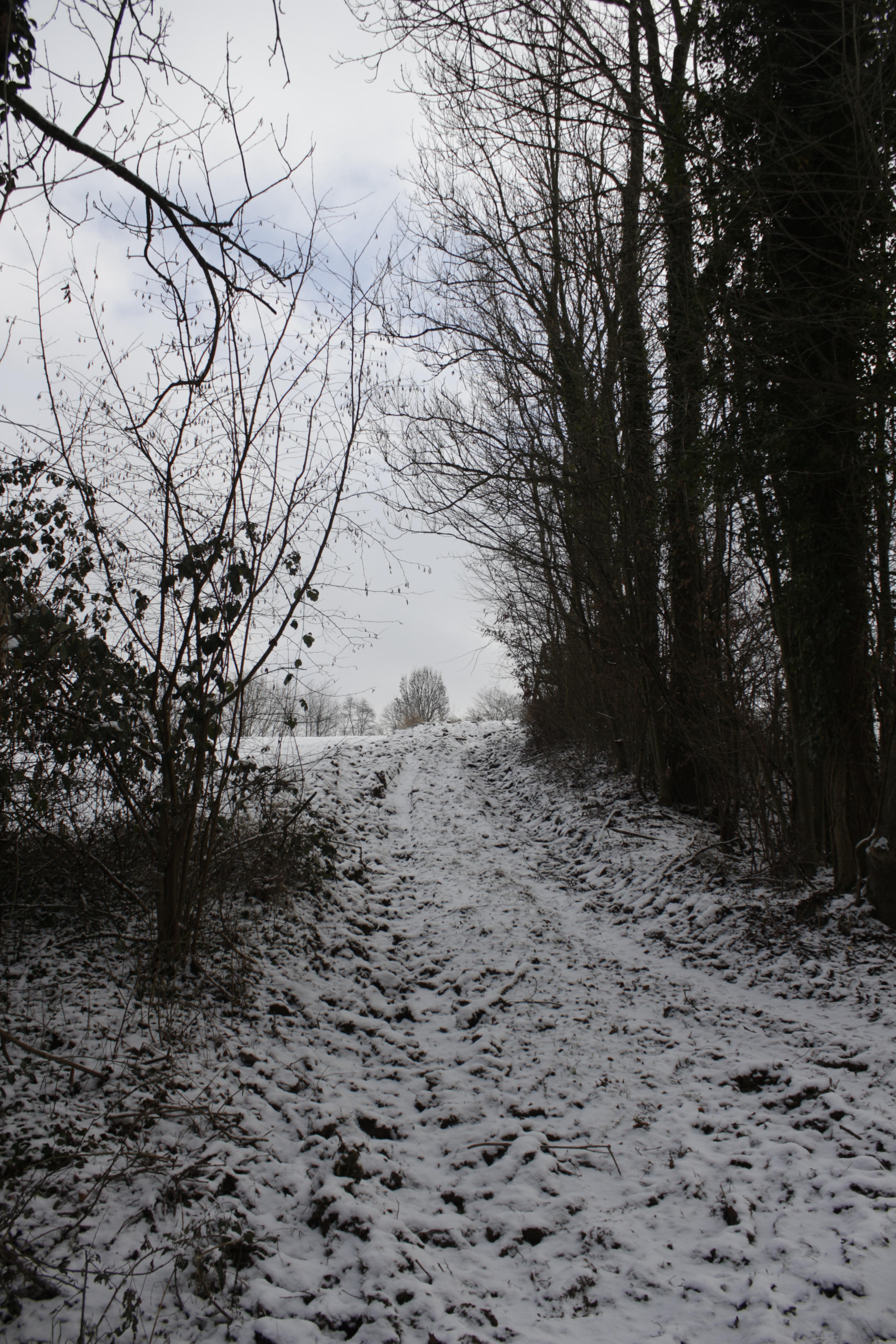 Dass tatsächlich recht viel Schnee liegt, also mehr als wir in den letzten Jahren hatten, und dass der jetzt auch schon länger da liegt, wollte ich mit den folgenden Bildern dokumentieren. Der Weg war jedenfalls gut zugeschneit, die Pfützen bis zum Boden durchgefroren.