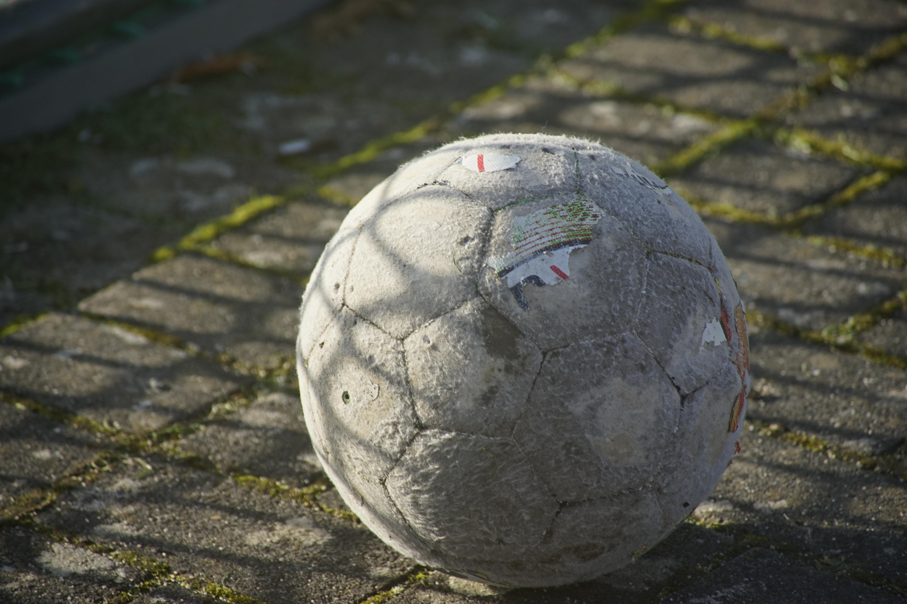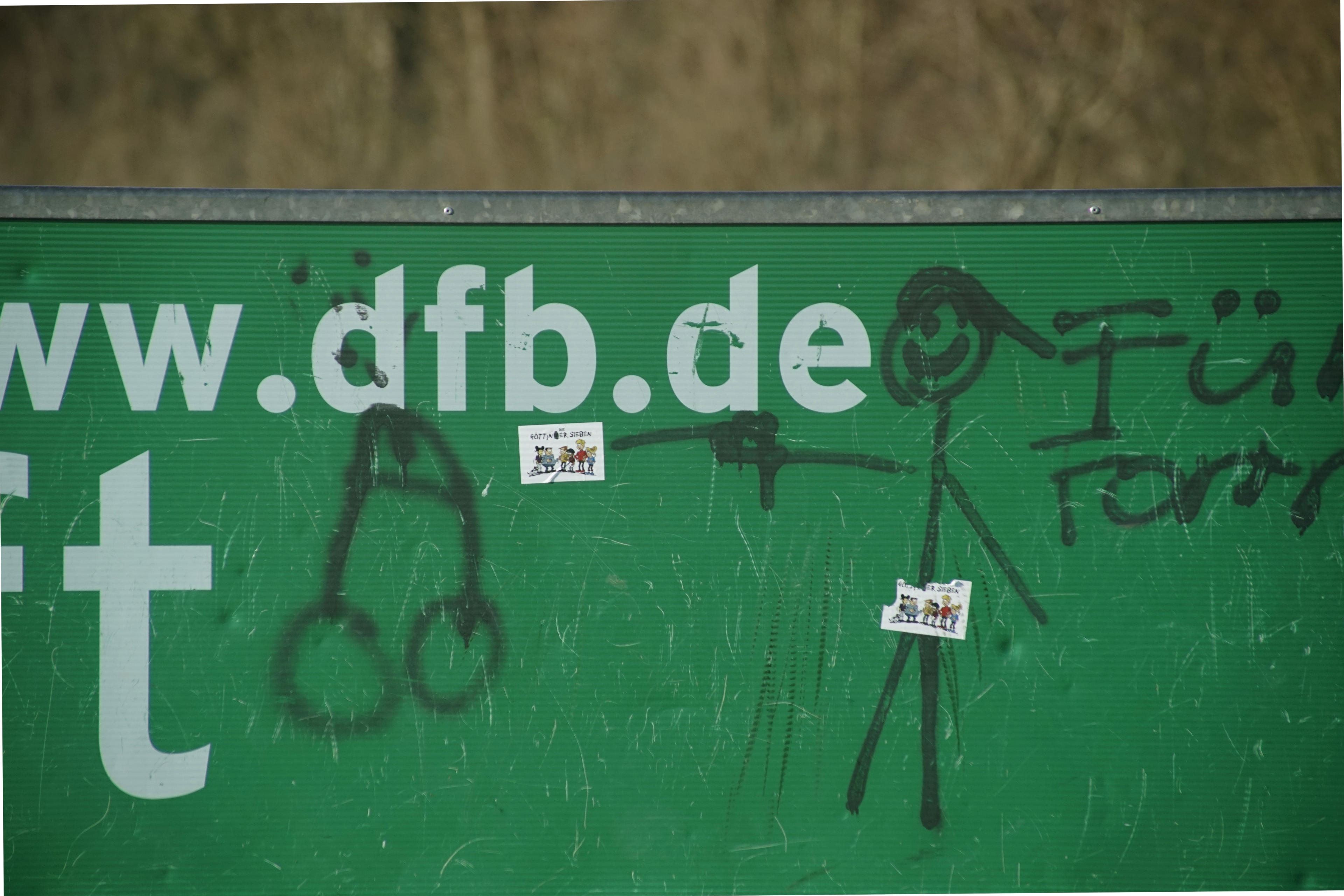 Dann hinterm Sportplatz an dem kleinen Platz (Plätzchen) für die Jugend vorbei und da lag dann dieser abgenudelte Fußball rum. Der hat echt schon bessere Zeiten gesehen, aber immerhin: Es gibt einen Ball. Vor allem witzig fand ich aber dieses Grafitti mit dem lächelnden Mädel, das voll enthusiastisch das Patriarchat in Frage stellt!