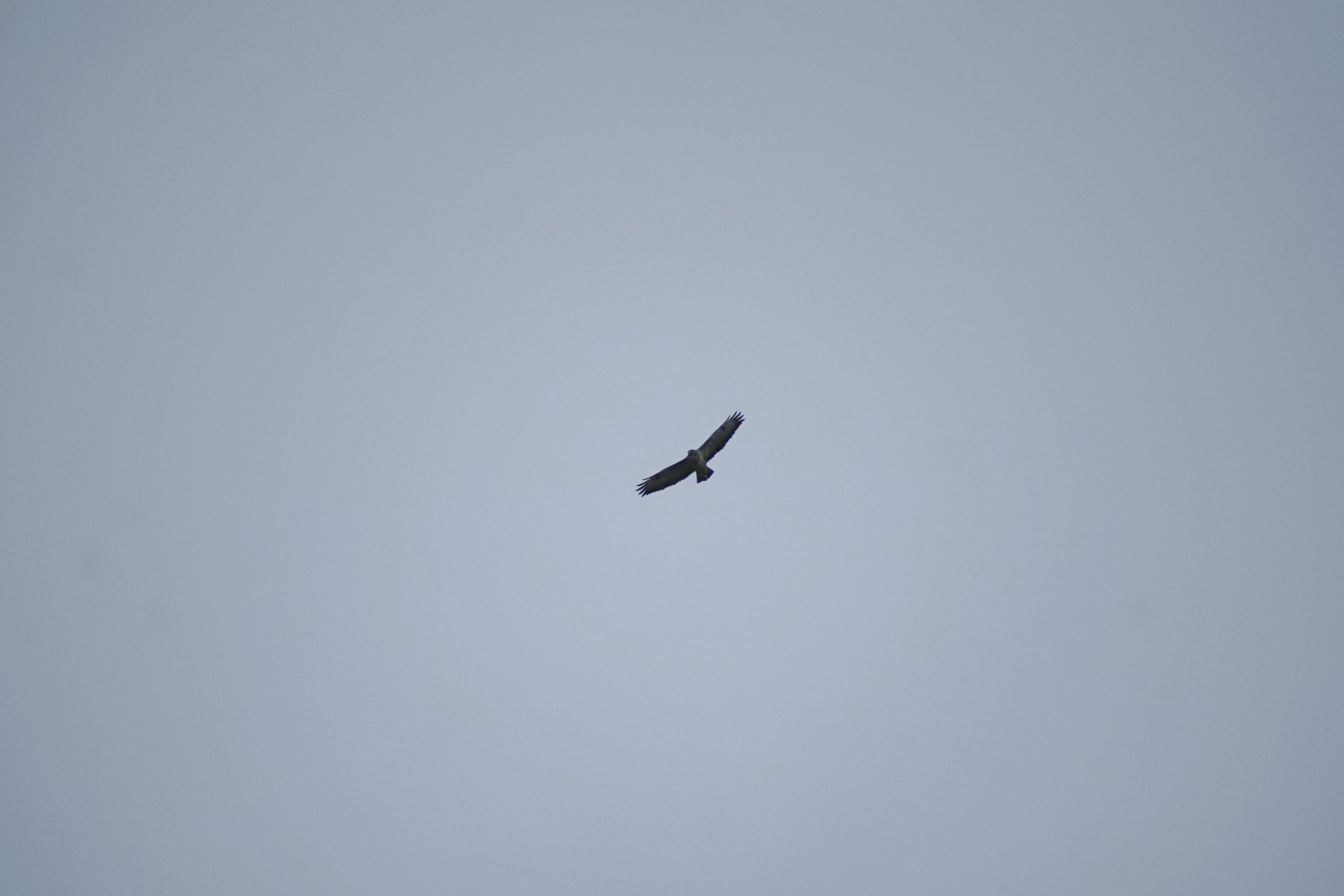 Und da war er dann, der Greifvogel, zog seine Kreise am Himmel auf der Suche nach etwas Aufwind (und wahrscheinlich einem Partner für die kommende Brutsaison - hat jedenfalls so gerufen). Ist mit diesen alten, langsamen Zooms aus der technologischen Steinzeit (1990er) schon nicht einfach, die überhaupt zu erwischen, die Viecher, wenn sie da oben am Himmel rum kreisen. Der Stangenantrieb für sowas ist vielleicht eine Hilfe, wenn man Dinge fotografiert, die sich nicht bewegen (Steine etwa), aber eigentlich möchte man für sowas moderne Ultraschall-Motoren im Objektiv selber, auch wenn ich immer meckere, dass das nur ein weiterer Point of Faliure wäre. Stimmt grundsätzlich ja auch und da ich normalerweise weniger der Vogelfotograf bin, ist das auch nicht weiter schlimm, dass der AF so langsam ist. Hier aber fällt es dann doch sehr auf.