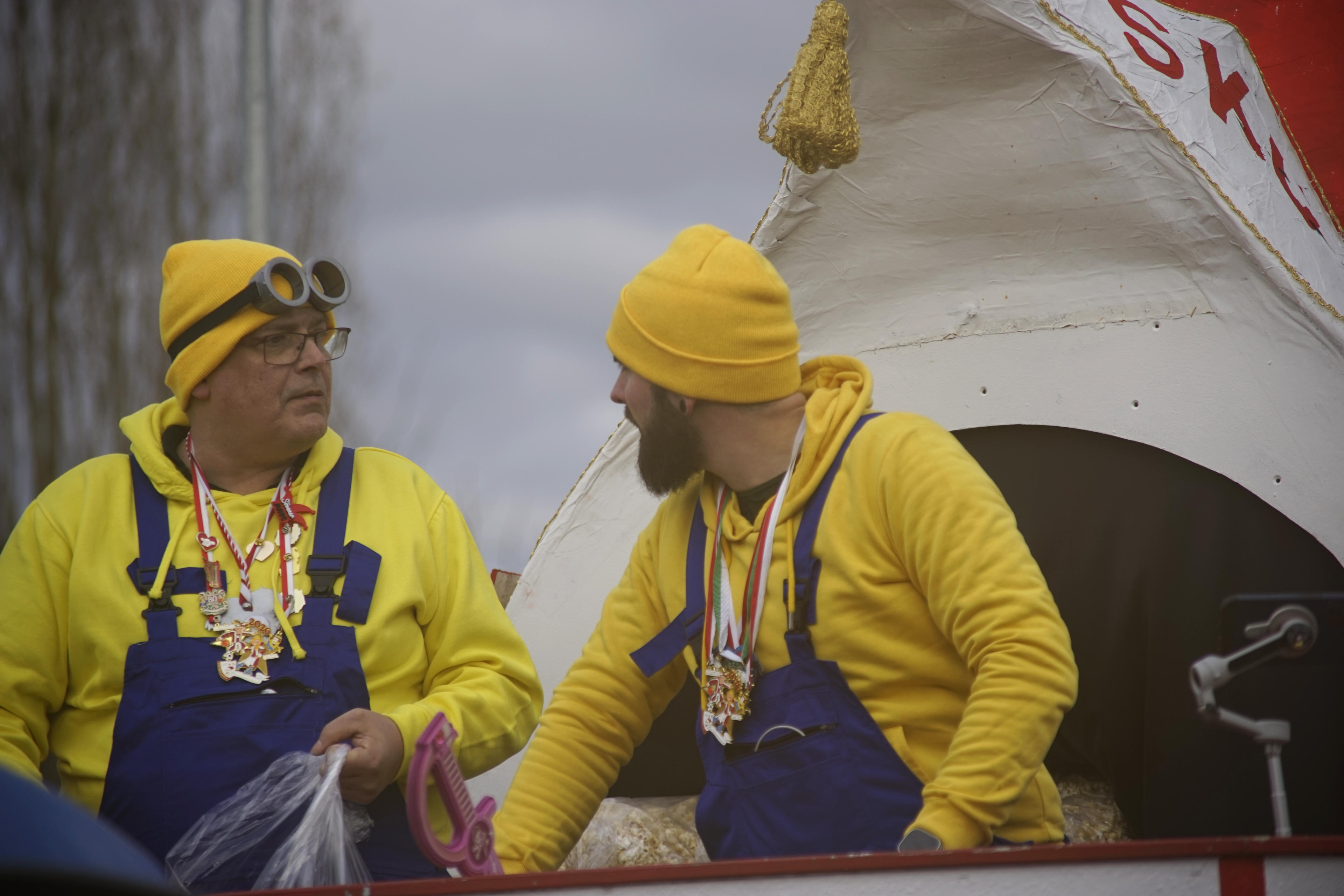 Die Minions, die in Hennef auch immer auf dem Rosenmontagszug mit fahren - den wir voraussichtlich dieses Jahr dann übrigens auslassen werden, es soll regnen -, waren auch mit von der Partie und bildeten, wenn ich mich recht erinnere, mehr oder weniger auch das Ende des Zugs. In einer gefühlten Stunde war das ganze Spektakel schon vorbei und ich habe trotzdem schon wieder hundert Bilder geschossen. Mit dem AT-X übrigens, wie man vielleicht sieht. Ich dachte ja, das Wetter wäre besser. Naja, geht auch so.