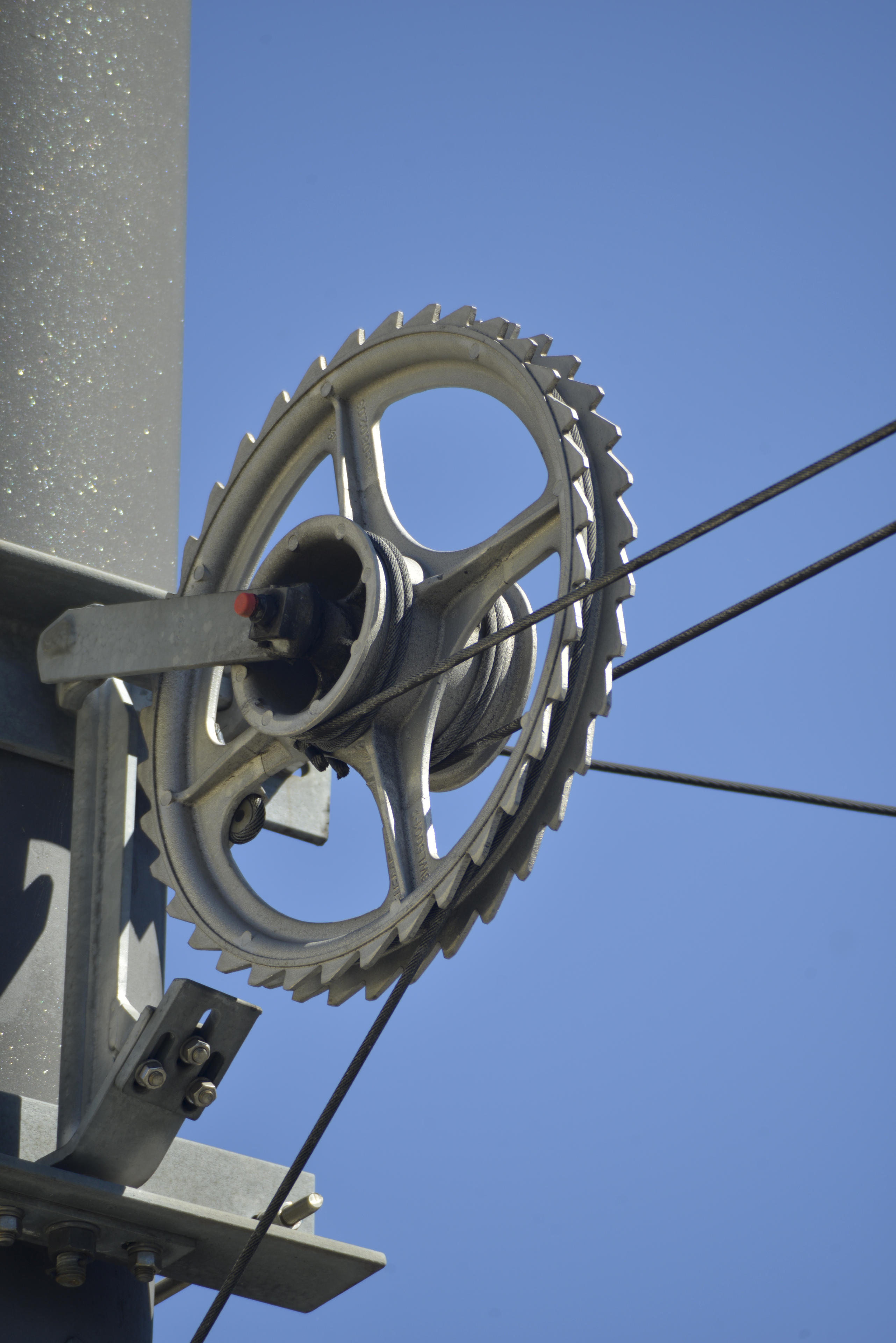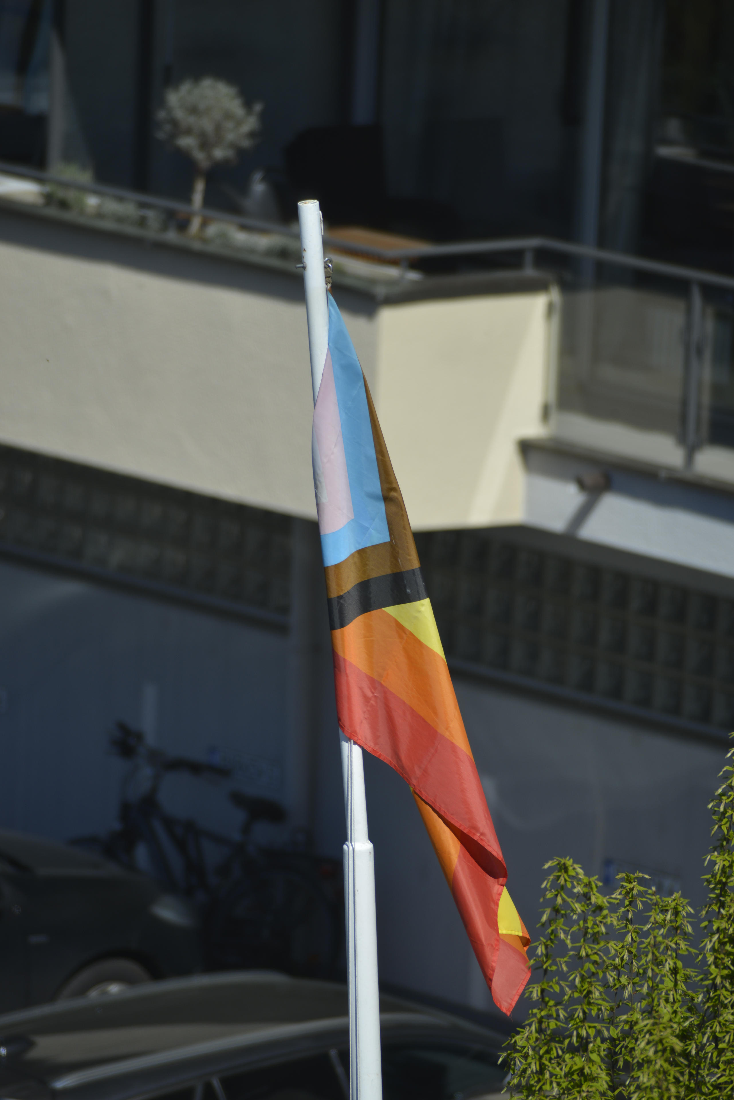 Kurz bevor wir dann in die von Sand Straße eingebogen sind, noch mal ein Blick auf die Aufhängung der Oberleitungen der Stadtbahn geworfen. Auch hier ist die Vergrößerng durch so ein langes Tele schon erstaunlich. Man kann die Schrift auf dem Dings lesen und sich fragen: Warum ist das Italienisch? Dann angebogen und da stand noch dieser glitzernde Schuh auf dem Schaltkasten. Don't mind if I do! Das 50er soll sich schließlich nicht langweilen!