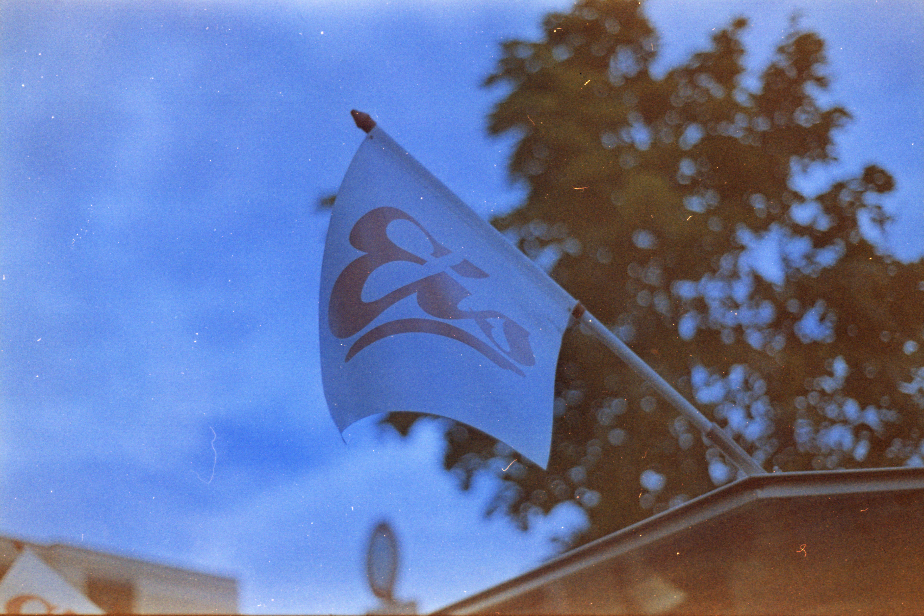 Meine Bilder am Ende des Filmes sind da von mundäneren Motiven geprägt: Ich hatte die Kamera mit zum August-Trekdinner und habe rund um Miss Pepper ein paar Bilder vom Industriegebiet gemacht. So Motive, wie ich sie ständig vor die Linse nehme: Verkehrsschilder, am Straßenrand geparkte Fahrzeuge, solche Dinge. Und wenn ihr gedacht habt, der Farb-Shift bei dem letzten Film war schlimm, dann macht euch auf was gefasst: Der Film ist praktisch komplett im Hintergrundnebel abgesoffen. Die Negative sind so dicht verwolkt, dass ich kaum die Stege zwischen den Bildern erkennen konnte, um den einigermaßen auf Streifen zu schneiden, damit ich ihn in den Scanner einlegen konnte.