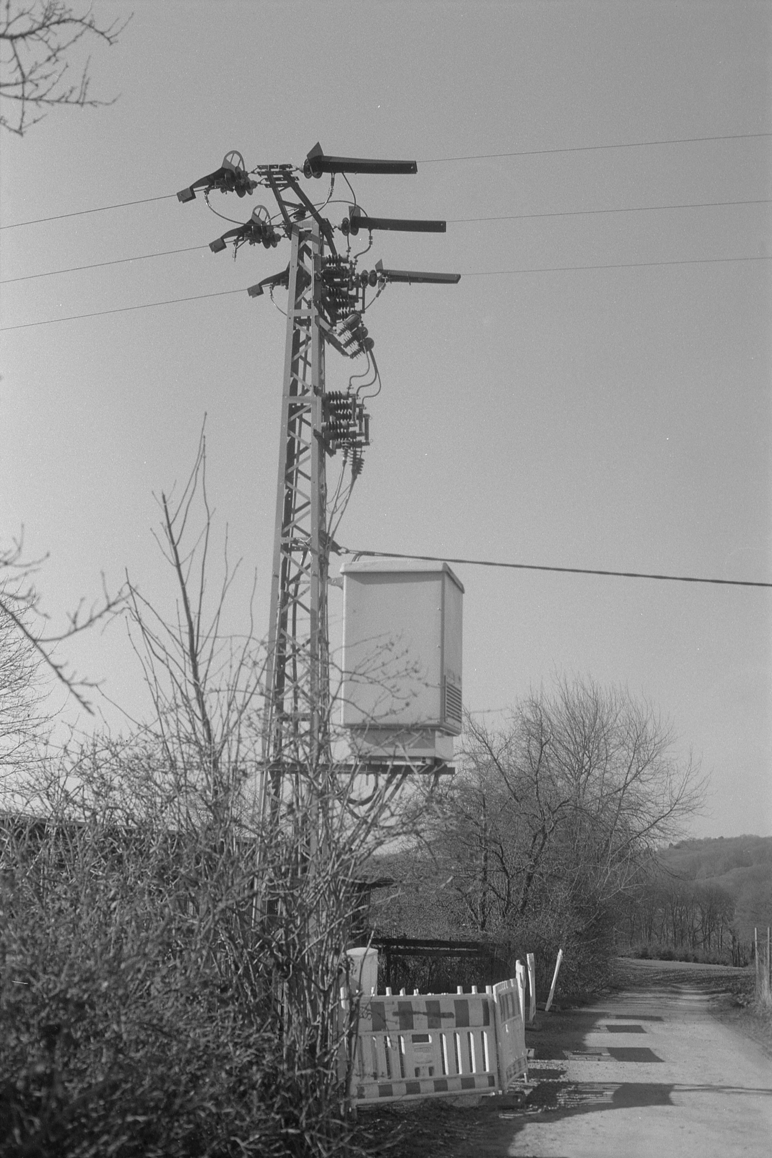 Zum Beispiel auch dieser Strommast mit Umspann-Dingsbums, oder was ist das da für ein großer Kasten mit Lüftungsschlitzen auf halber Höhe? (1/1000s, f/4.) Das ist da in einer der Sackgassen/Feldwege, die runter ins Naafbachtal zeigen. Keine Ahnung, weil weit es da eigentlich runter geht. (Laut Google Maps tatsächlich quer durch den Wald bis ins Tal. Erstaunlich, wusste ich noch gar nicht. Das ist ein bisschen außerhalb meiner Jagdgründe, die ich als Kind erkundet habe. (Ich gehöre ja noch zu dieser prä-Internet-Generation, die nicht einen komplett durch getakteten Tagesablauf hatten, sondern einfach nur gesagt bekommen hat: Wenns dunkel wird, biste wieder zu Hause! ;-) Aber bis ins Naafbachtal war es selbst uns dann ein bisschen zu weit. Obwohl es da unten sehr hübsch ist, da müsste ich auch noch mal eine Runde drehen. Früher war das ja ein Geheimtipp, aber heutzutage stehen da immer Autos im schlammigen Straßenrand und Leute laufen da rum. Hatte ich eigentlich mal die Fotos von vor den Dinosauriern hier eingestellt, die ich da gemacht habe? Scheinbar ja. Die ersten beiden sind da im Tal entstanden.
