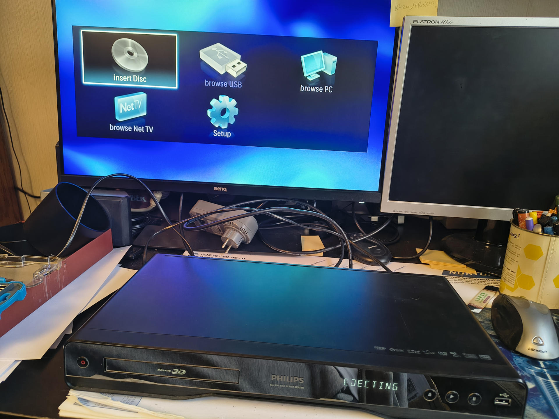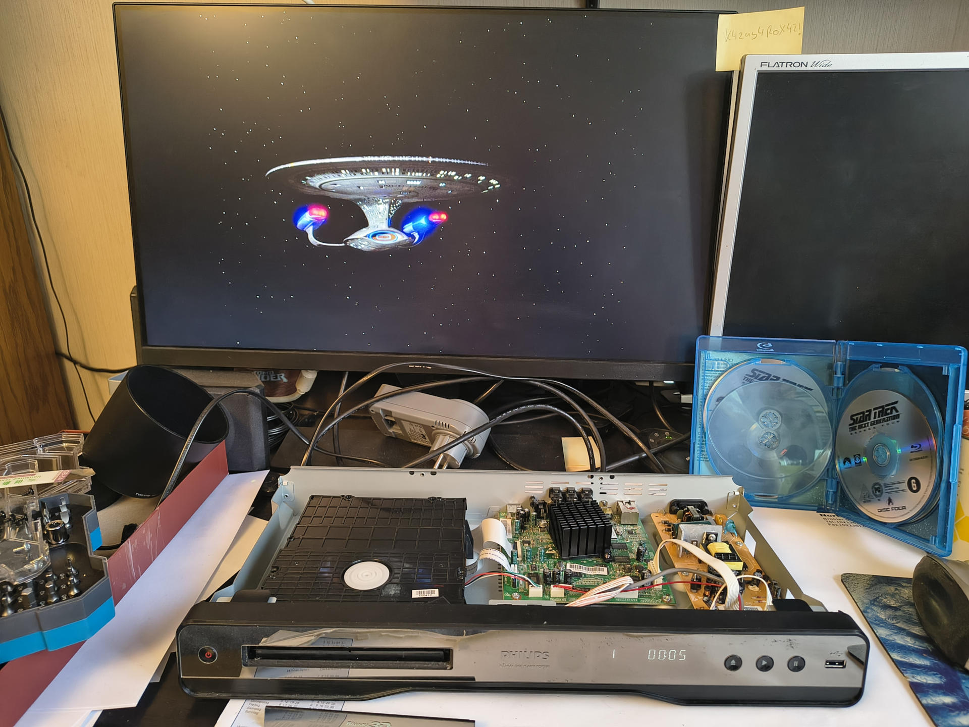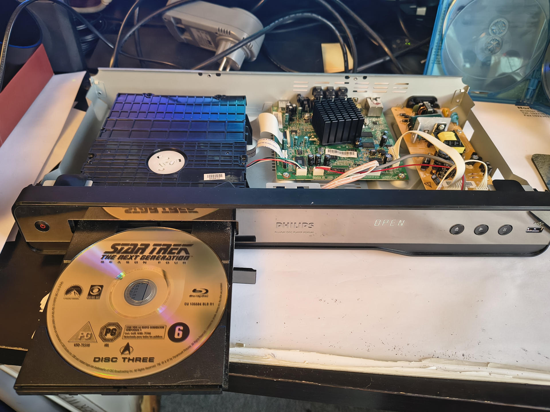 Jedenfalls. Ich wollte mich eigentlich gar nicht über die Nasen im amerikanischen Syndicated-TV-Business aufregen, sondern davon erzählen, dass der P, so nett wie er ist, mir seine italienischen Blu-Ray-Discs ausgeliehen hat! Weil, im Gegensatz zu Paramount ist der nett! ;-) Nur, wie spielt man sowas noch mal ab? Diese ganze Streaming-Scheiße ist ja so fürchterbar convenient! Also mal den Blu-Ray-Player von Philips an den Strom angeschlossen, von dem er jetzt bald 10 Jahre getrennt war. Ich mein, das Ding haben wir als Dreingabe zum Fernseher bekommen, insofern, ja, es spielt Disks ab, auch brav in diversen Formaten, und es kann auch sowas wie "online" (Mediatheken und sowas), aber. Total veraltet nach 15 Jahren. Achso, ja, es handelt sich übrigens um einen Philips BDP5180/12, falls ich das noch nicht gesagt haben sollte.