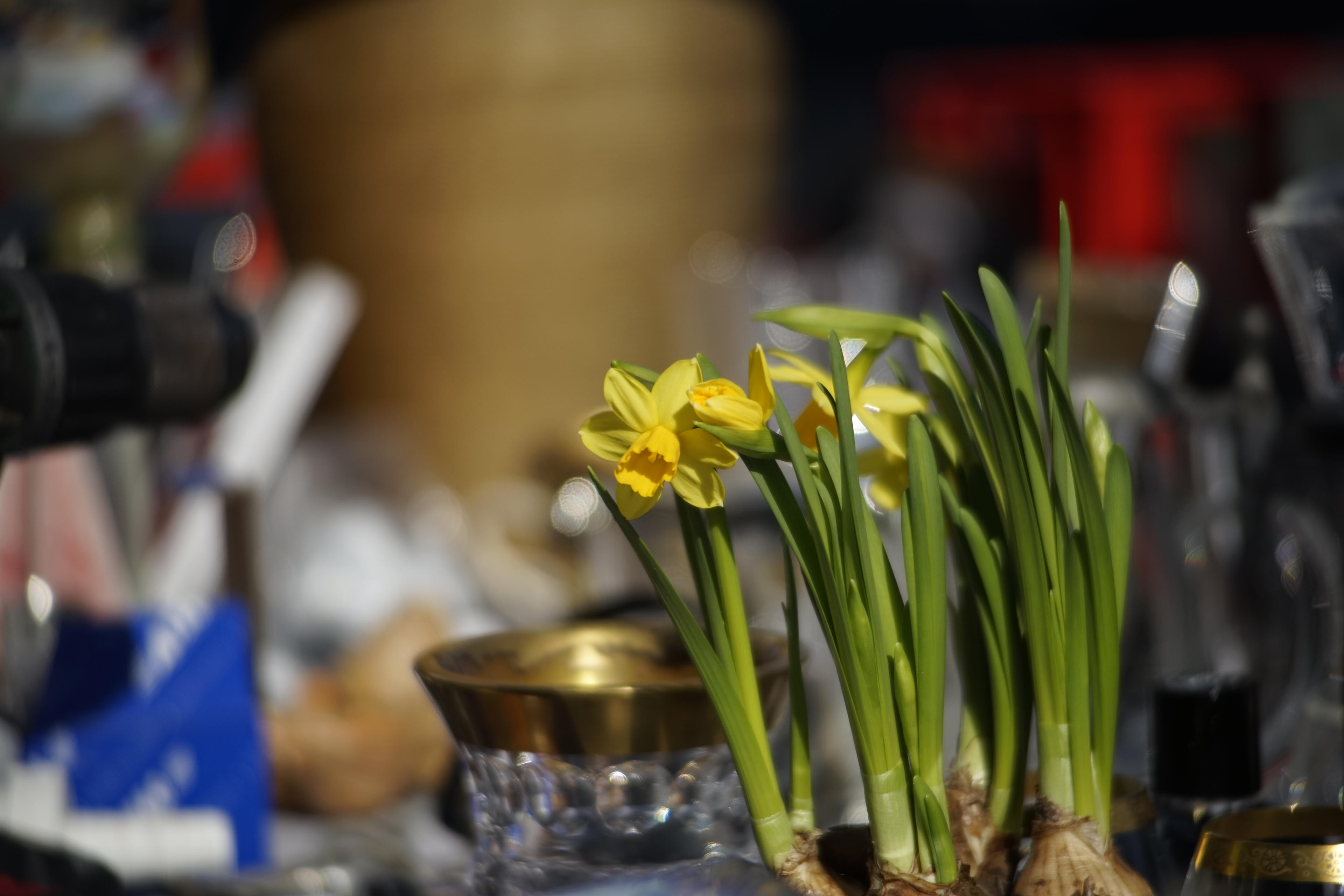 Nebenbei gab es natürlich auch wieder die üblichen Neuwaren-Verkäufer. Da zähle ich jetzt auch mal die Blumen-Fritzen dazu, wobei die Narzissen da unten tatsächlich an einem der "normalen" Stände standen. Die haben die selber gezüchtet? Weiß nicht, oder einfach eine ganze Palette gekauft, um sie dann nebenbei mit zu verhökern? Die Standmiete muss ja auch wieder rein kommen.