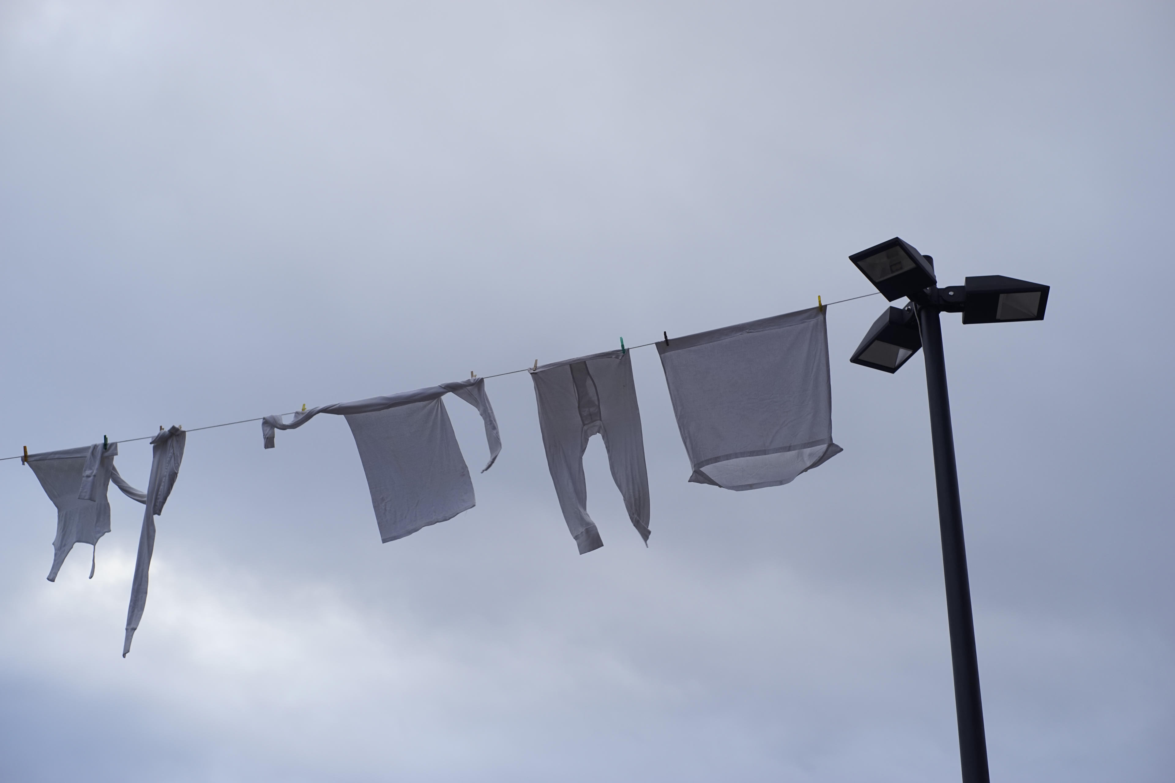 Auf dem Möhne-Platz - ja, wir sind im Rheinland! - hinter der SWB hing dann auch die Wäsche der Wäscheprinzessin aus. Ich kenn mich mit dem lokalen bonner Brauchtum ja auch nur so lala aus, aber das ist hier ja so ein Ding. Weil, ich weiß auch nicht, die Waschweiber sind in Bonn ja sowas wie die Oberjecken. Das Gesellschaftliche Dingsbums wird halt auch hier auf den Kopf gestellt und scheinbar waren die hier sonst den Rest des Jahres die Gearschten. Was weiß ich. Jedenfalls hing die Wäsche aus, als wir da vorbei kamen und ich hab sie fotografiert.