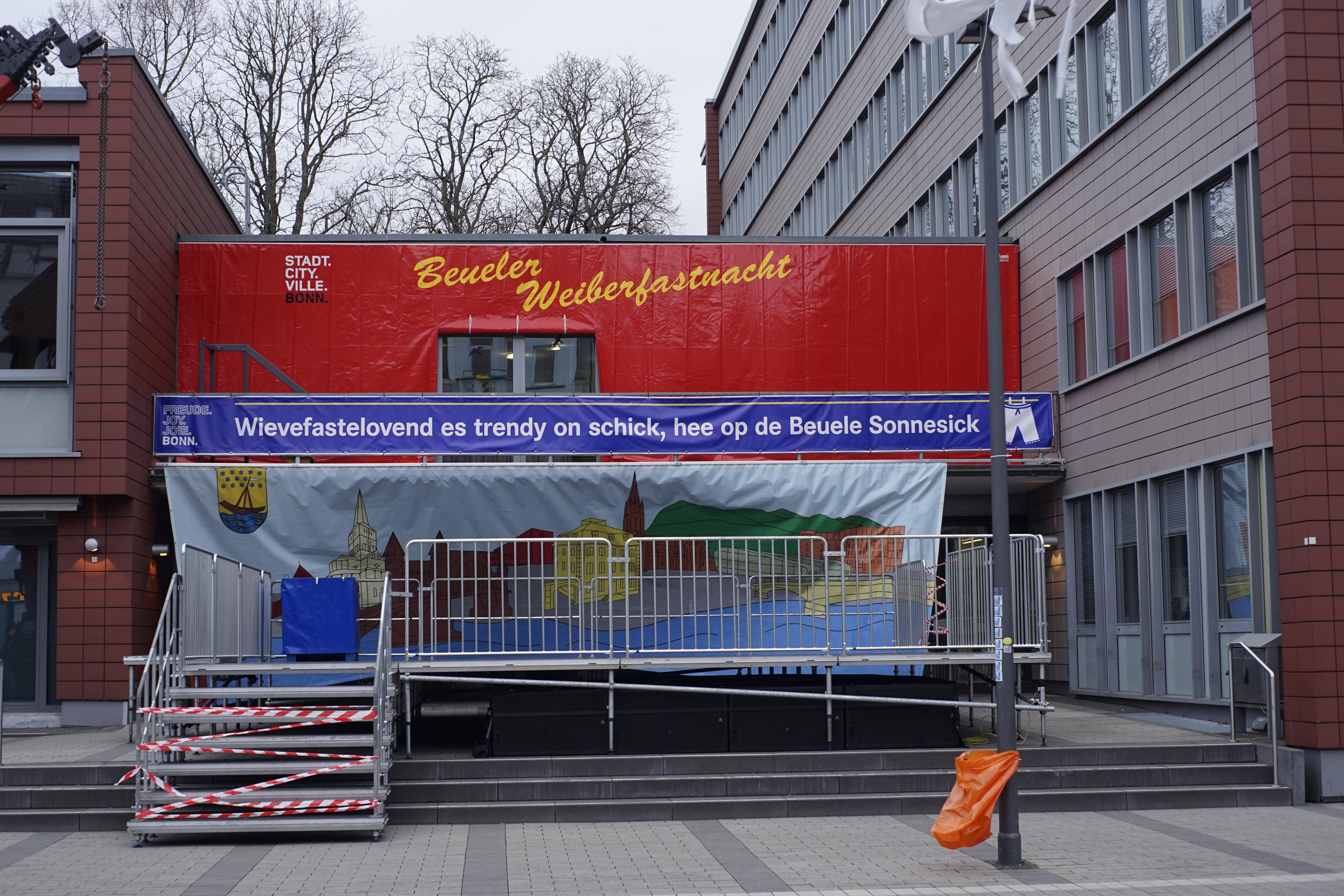 Überhaupt war wohl die Vorbereitung für Weiberfastnacht im vollen Gange, die Stadtwerke hatten auch schon diese hübschen, grellen, orange-warnfarbenen Müllsäcke aufgehängt. Nicht zu verfehlen, wenn man wieder ein bisschen zu viel Kölsch intus hat. Gehört ja auch zu lokalen Brauchtum, den guten Gerstensaft im hohen Bogen und weitere Details ersparen ich uns! ;-)