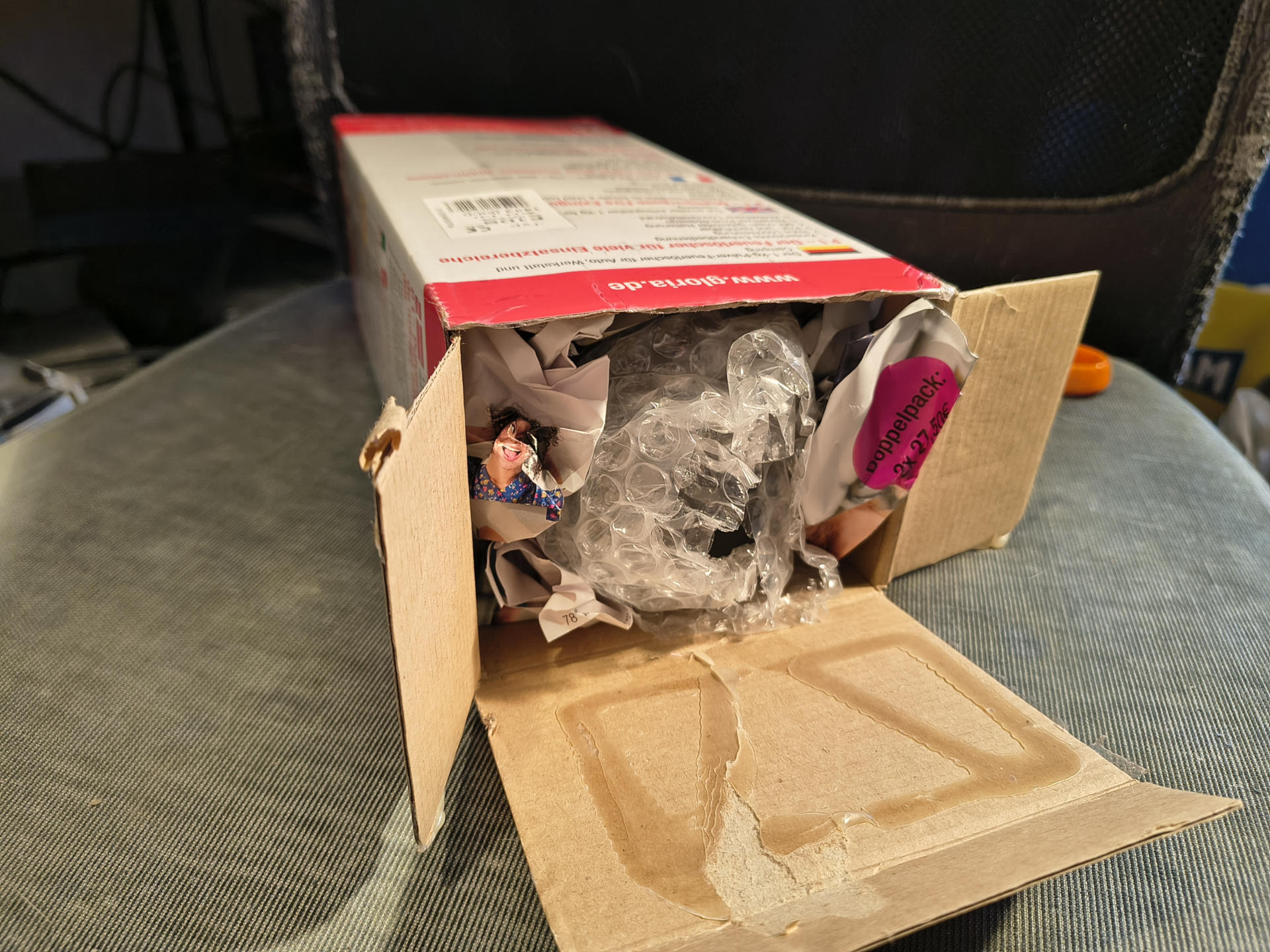 Kam heute gut verpackt an. Und ja: Die Noppenfolie hat Abdrücke im Schlotz hinterlassen. Gut, dass es die Tage so kalt war, während das in der Packstation gelegen hat. Sonst hätte die Noppenfolie sich wahrscheinlich auf immer und ewig mit dem Lösungsmittel, das aus der Beschichtung ausschwitzt, verbunden und ich hätte die niemals mehr abbekommen!