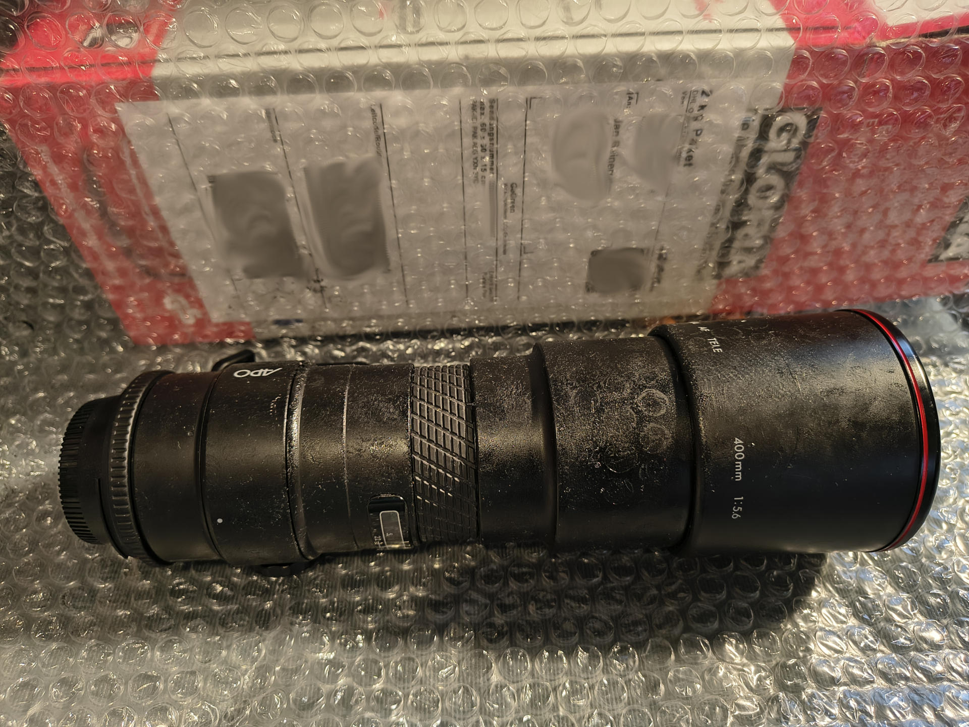 Langer Name, langes Objektiv. Ich habe es wieder getan: Da kam diese eBay-Auktion vorbei: Ein Sigma AF Tele 400mm 1:5,6 Multi Coated APO (das alte, 1988-1995er, NICHT das neuere, 1996-... Macro), ein echtes (vintage-retro?) Schmuckstück. Leider - wie immer bei Sigmas aus diesem Zeitalter - als "klebt, dass man es nicht benutzen kann" angegeben. Und "es lässt sich nicht zusammenschieben". Also, Ersteres krieg ich hin, das ist eine der leichteren Übungen. Und Letzteres? Das ist eine Festbrennweite, da kann also nichts wirklich wichtiges nicht zusammenschiebbar sein. Die Sonnenblende? Wahrscheinlich. Und das alles für 12 Euro "Sofortkauf als defekt"? Also, wenn da noch irgendwelche anderen Probleme an dem Teil dran sein sollten, dann werd ich die schon irgendwie geregelt bekommen. Ich mein: Zwölf Euro! Hallo?! Da kann ich nicht nein sagen! Gekauft.