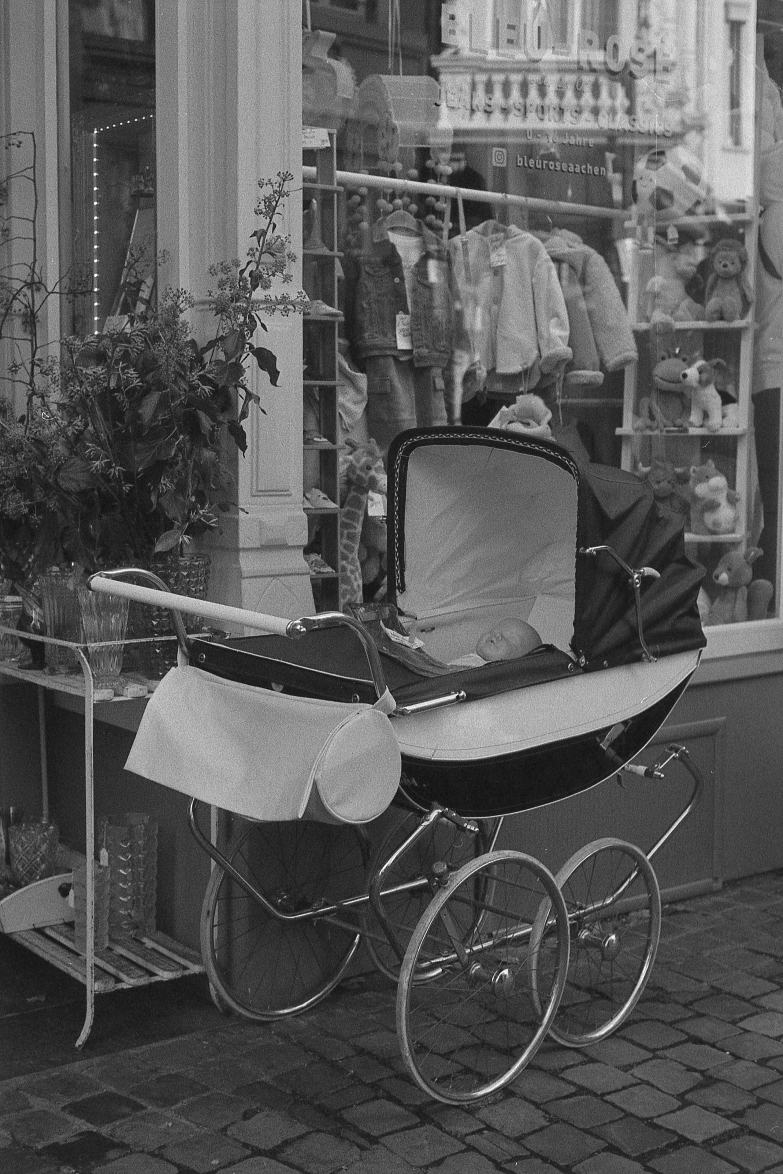 Den Kinderwagen mit passender Puppe vor dem Kinderklamottenladen konnte ich mir dann auch nicht entgehen lassen. (50mm, 1/250s, f/4.) Und diese Schattenszenen sind dann halt der Grund für einen 400er Film!