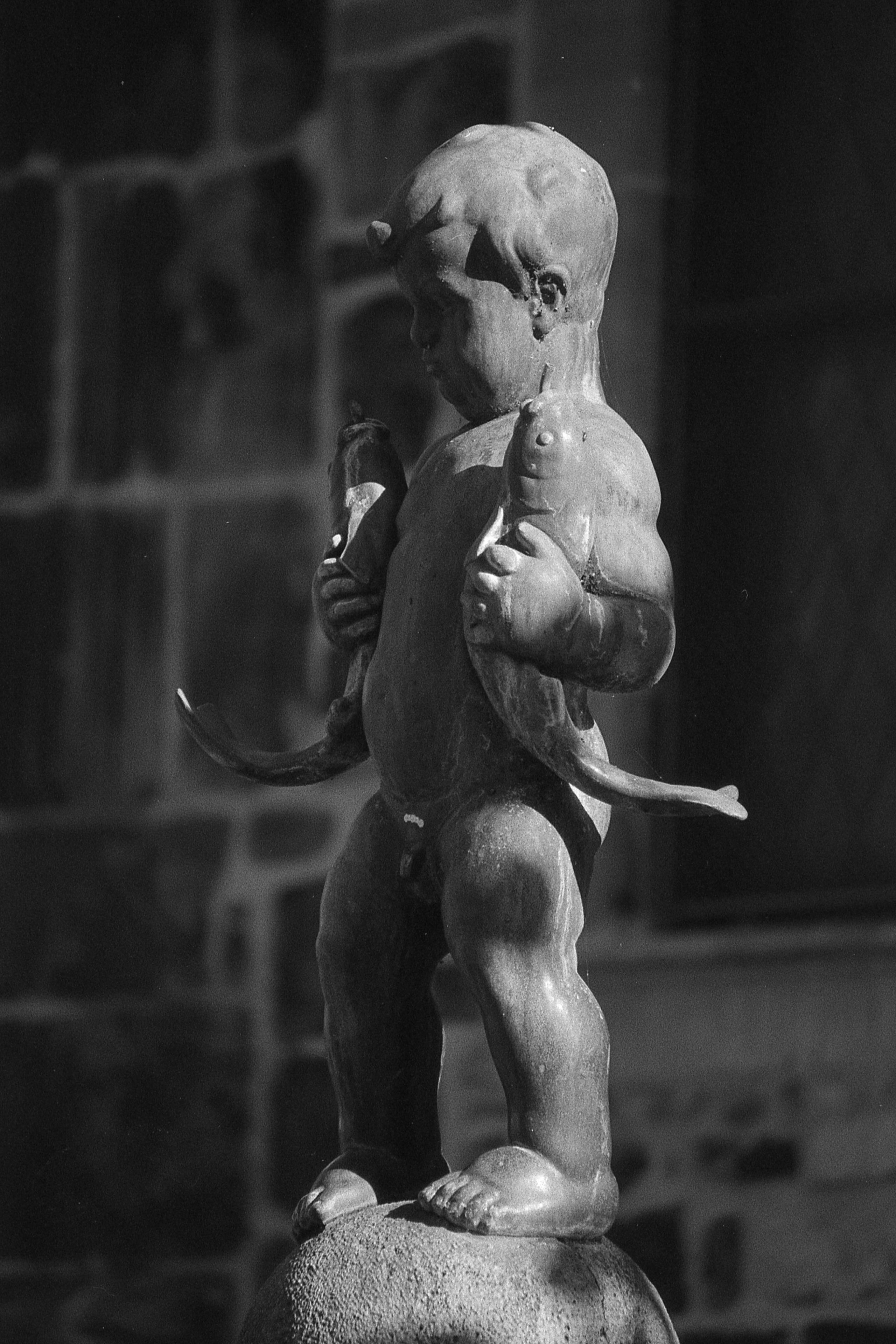 Noch mehr Heilige stehen vor dem Dom herum, die nehme ich auch gerne mit, wenn ich sie denn in einem unbeobachteten Moment erwische. (100-200mm @ 200mm, 1/250s, f/4,5.) Sehr gut gefällt mir hier der Hintergrund: Hell und unscharf, ein passender Kontrast zu den beiden Herren vorne. Tolles Bild. Ich liebe dieses Objektiv!