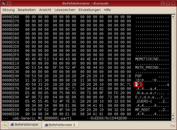 • Wir legen ein Verzeichnis MP3 an, also zB mkdir memorystick/mp3