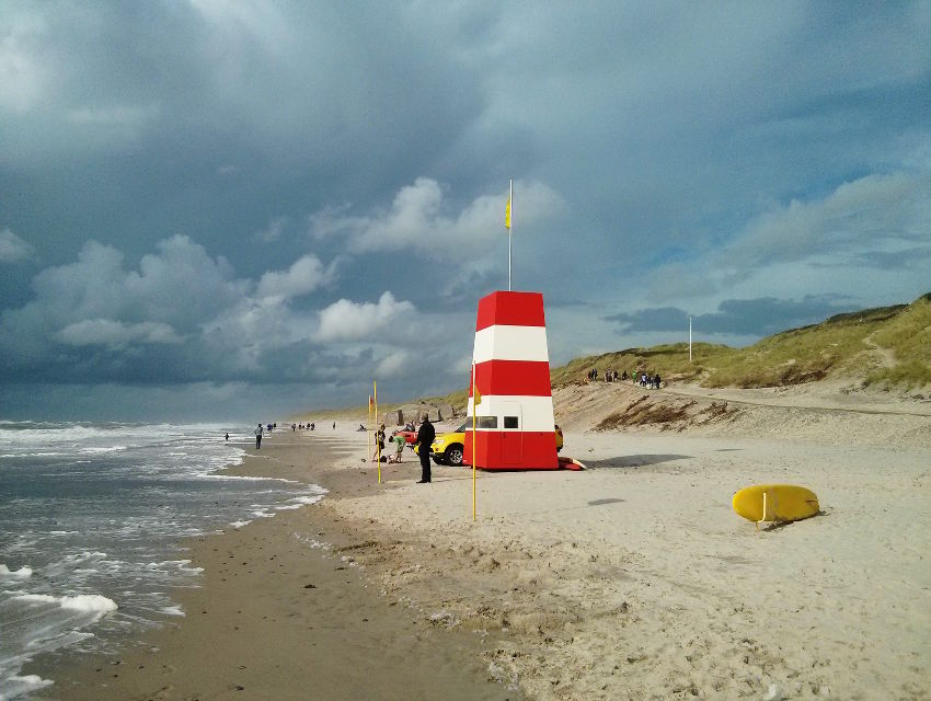 Danach ging es dann noch an den Strand, der tägliche Lauf einmal nach Søndervig und zurück. Die Aufpasser waren ja letztes Jahr schon da, aber hatten die da auch so einen Turm dabei? Offenbar saufen in letzter Zeit so viele Touristen ab, dass die hier mehrere Vollzeitstellen für Rettungsschwimmer brauchen.
