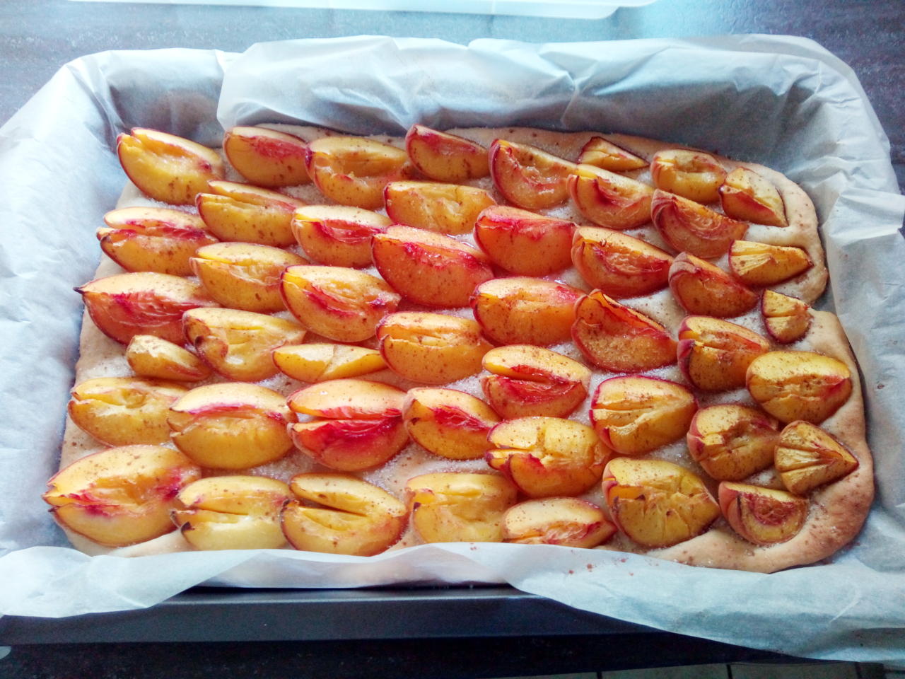 Wenn ich jedes Mal ein Foto mache, wenn ich einen Pfirsichkuchen backe, werde ich in der nächsten Zeit wohl einiges zu tun haben...