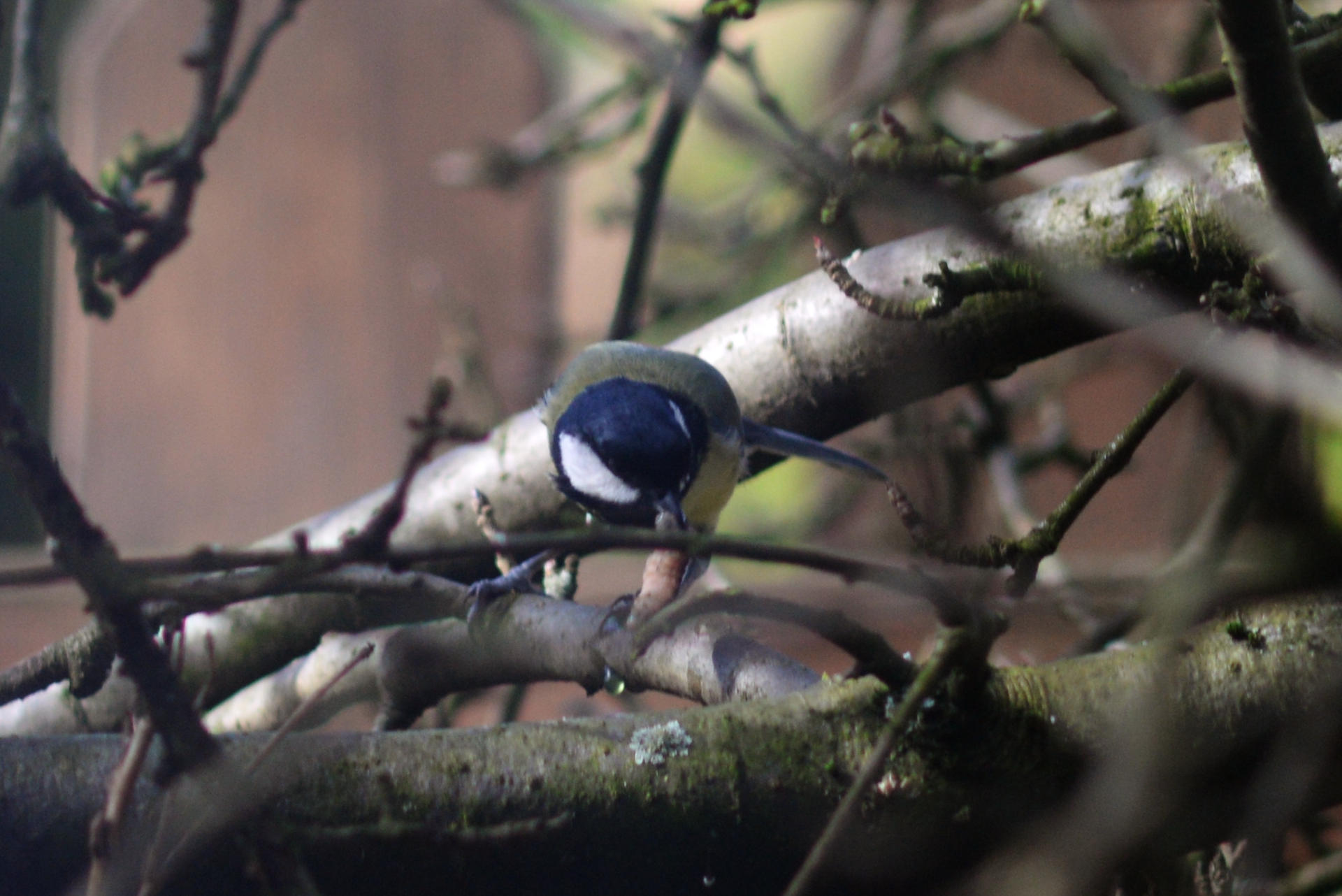 Vorenthalten wollte ich die Bilder trotzdem niemanden, ist es mir doch mal gelungen, eines dieser niedlichen Vogelviecher so nah mit dem 200mm abzulichten, dass der Center Crop tatsächlich mal den kompletten Vogel zeigt. Dumm nur, dass da Zweige (und die dreckige Bürofensterscheibe mit ihren Reflektionen) dazwischen waren. Trotzdem kann man einige Details erkennen, die einem im Allgemeinen sonst verborgen bleiben, zum Beispiel die karnivore Ernährungsweise von Kohlmeisen.