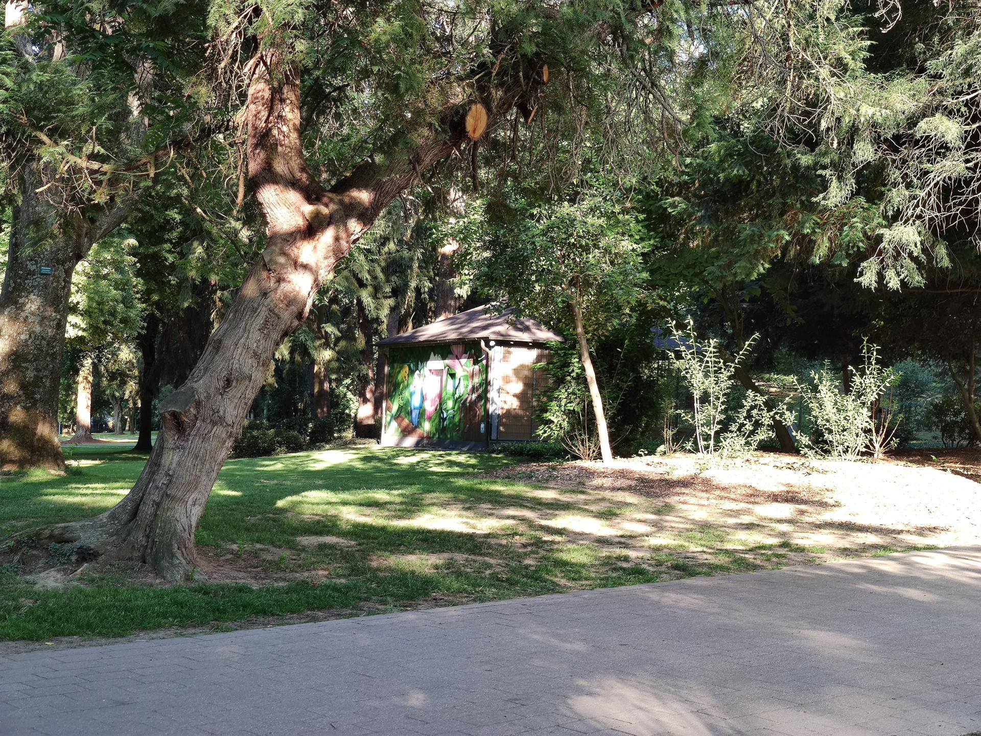 Nun mag man sich fragen, warum ist diese Anlage so schief auf dem Bild, und ich weiß es auch nicht. Da sieht man mal wieder, dass es nicht unbedingt immer "richtig" ist, sich am Horizont zu orientieren. (Der ist nämlich ziemlich genau waagerecht, wie man am weißen Streifen des defekten Scanner-CCDs erkennen kann, den ich offenbar beim raus retuschieren vergessen habe.)