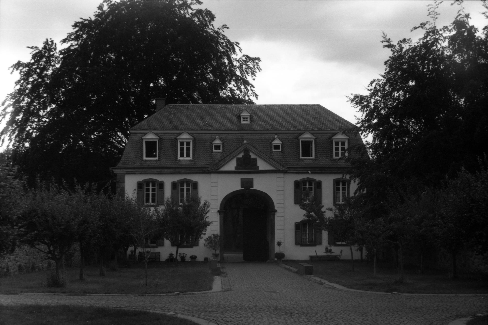 Das letzte Bild ist von der gegenüber liegenden Seite aus geschossen. (Helios 44, f/2.8, 1/250s.) Hier tritt das Gebäude so richtig schön hell aus dem umgebenden Wald heraus und die Bäume am Wegesrand sind schön unscharf. Gutes Bild.
