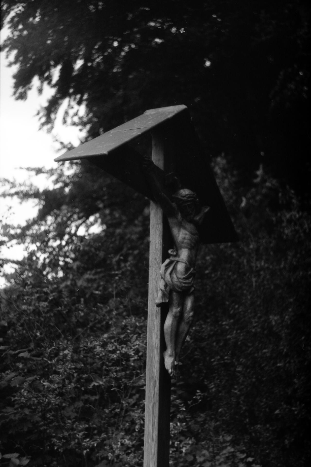 Als nächstes gibt es drei mal hochkante Bilder: Zum Beispiel Jesus am Kreuz. (Helios 44, f/2.8, 1/500s.) Sein Gesicht ist ein bisschen dunkel geraten. Im Foma ist leider auch nicht so viel drin, dass man da noch mehr raus holen könnte, da müsste ich wohl mal was Teureres kaufen...