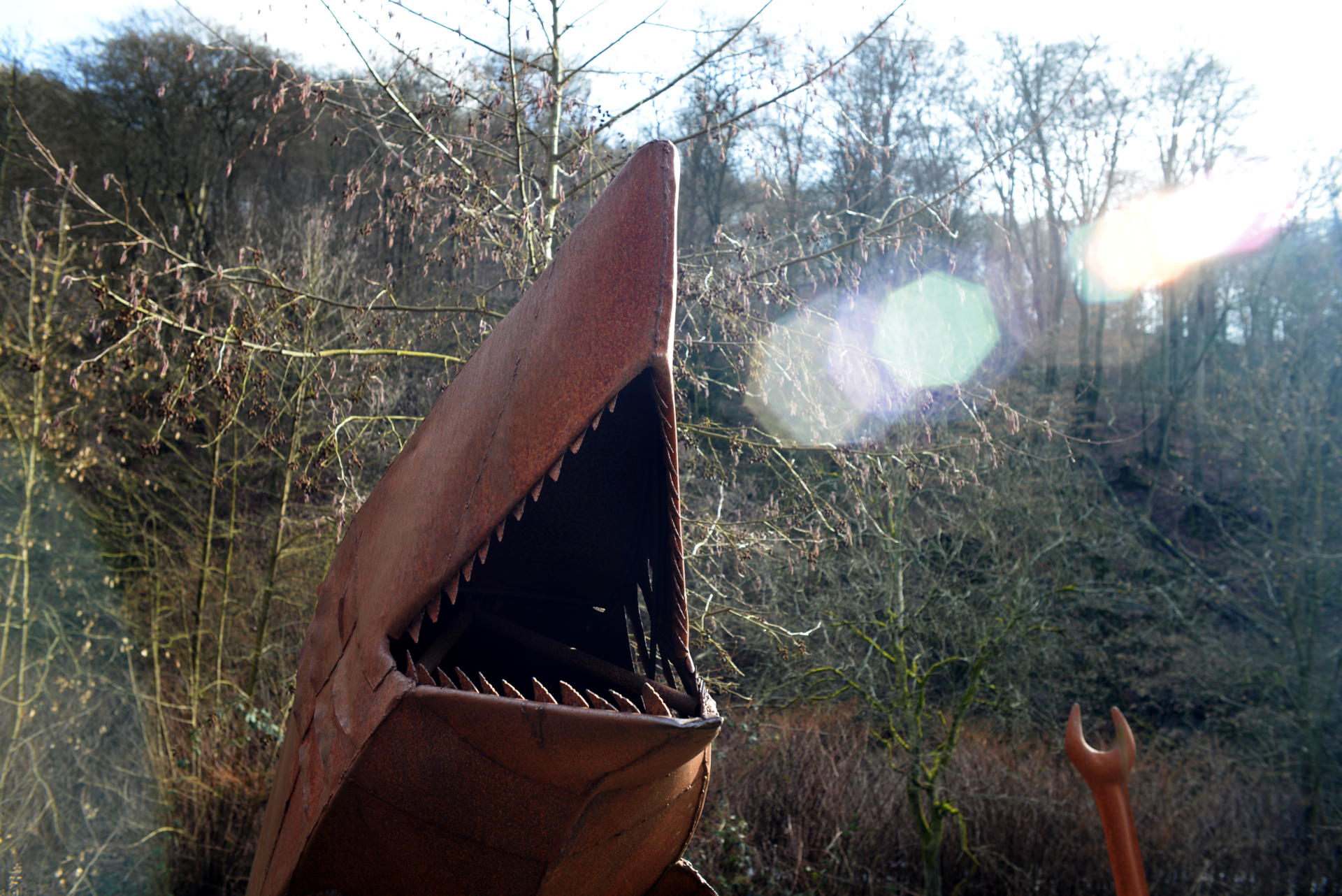 Das "Reiten verboten" Schild habe ich dann direkt mal meiner Kollektion von Straßenschildern hinzu gefügt, weil der Kopf vom Reiter überklebt ist. Überhaupt habe ich der Schilderdsammlung heute ein paar interessante Exemplare hinzufügen können, aber dazu später mehr. Am Fischerei-Museum ging die Sonne schon so langsam dem Horizont entgegen und lugte nur noch hin und wieder zwischen den Bäumen hervor, was "in Echt" besser aussah als hier auf dem Foto, muss ich gestehen.