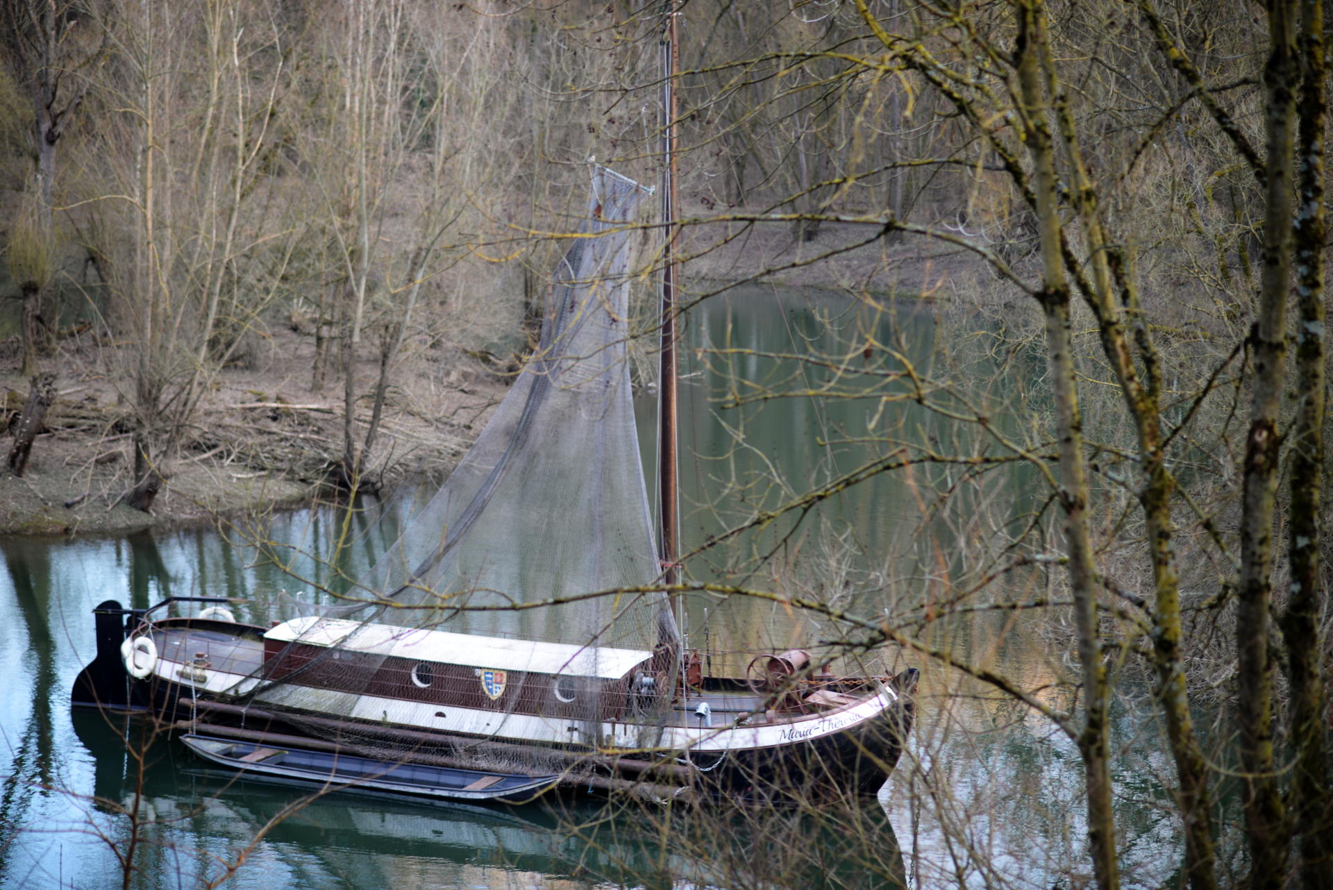 Hinter dem Museum liegt die "Maria-Theresia" im alten Rheinarm. Wo kommt wohl der Name "Diescholl" her? Würde man wahrscheinlich im Fischerrei-Museum erfahren, zusammen mit der Geschichte dieses Schiffes, aber Corona!