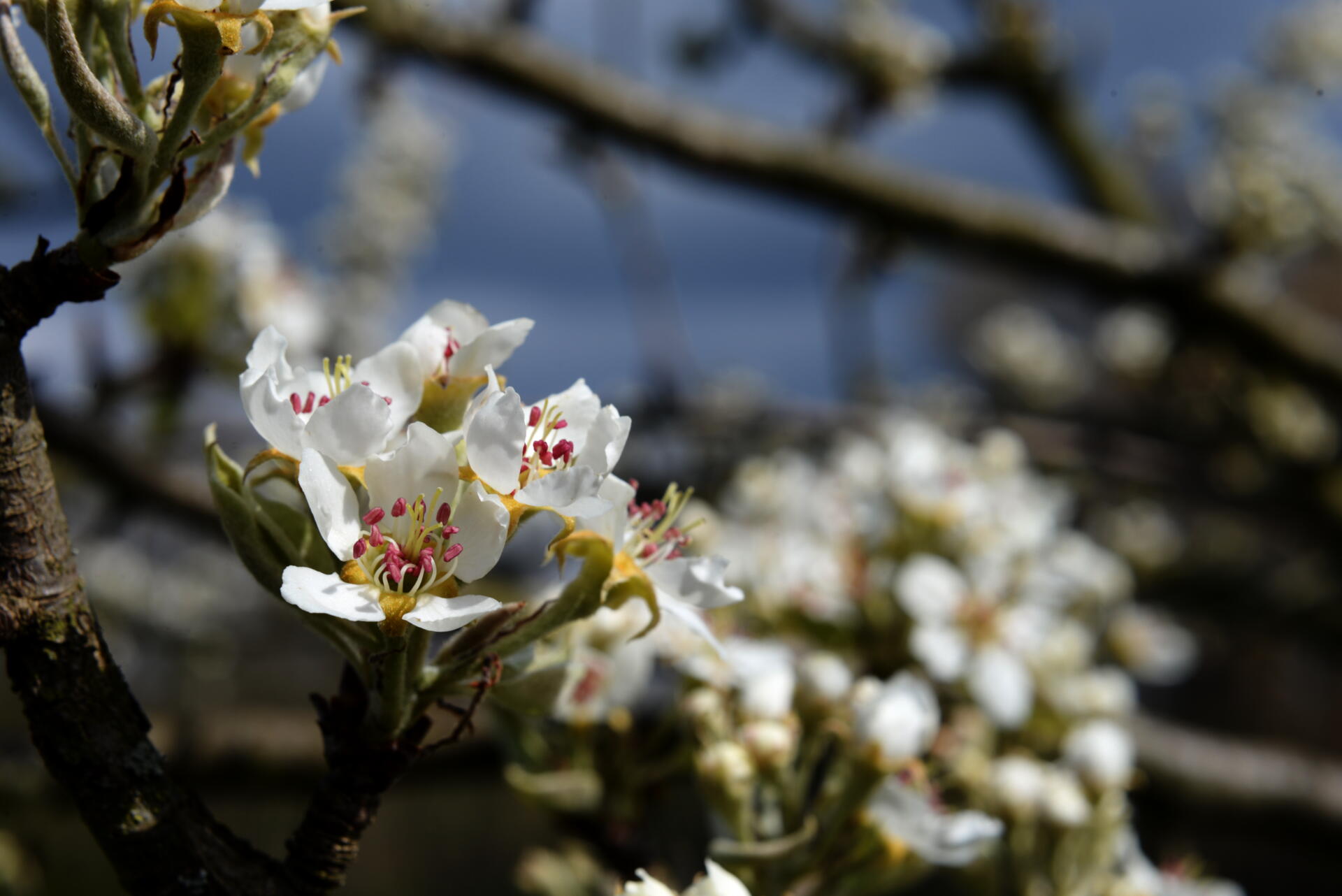 Trotz des kalten Wetters mit Nachtfrost und allem Pipapo blühen die Obstbäume. Und zwar so richtig heftig. Unten auf der Obstbaumwiese sind riesige Blüten an den Ästen. Das erste ist glaube ich allerdings eine wilde Kirsche, die stand an der Straße, während das andere Äpfel werden sollten.