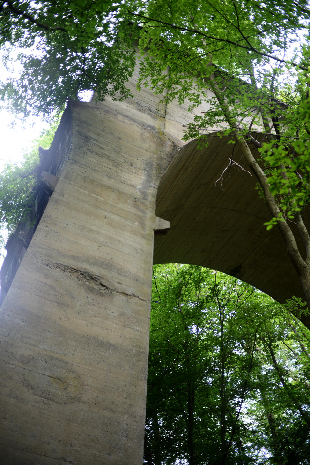 Um das ganze mal zu beschleunigen, kommen hier jetzt erst mal die ganzen Fotos aus der Gegend auf einmal. Zum Beispiel welche von der Ruine der Brücke. Die habe ich ja auch immer mal wieder dazwischen. Dieses Mal bin ich ein bisschen weiter hoch gegangen, um die Graffiti zu fotografieren, bin dann aber sehr schnell umgekehrt, also ich die - sagen wir mal - menschlichen Hinterlassenschaften gefunden habe. Ihh. Kann man(n) seine benutzte Verhütung nicht in den Mülleimer werfen? Da will ich nun echt nicht rein latschen!