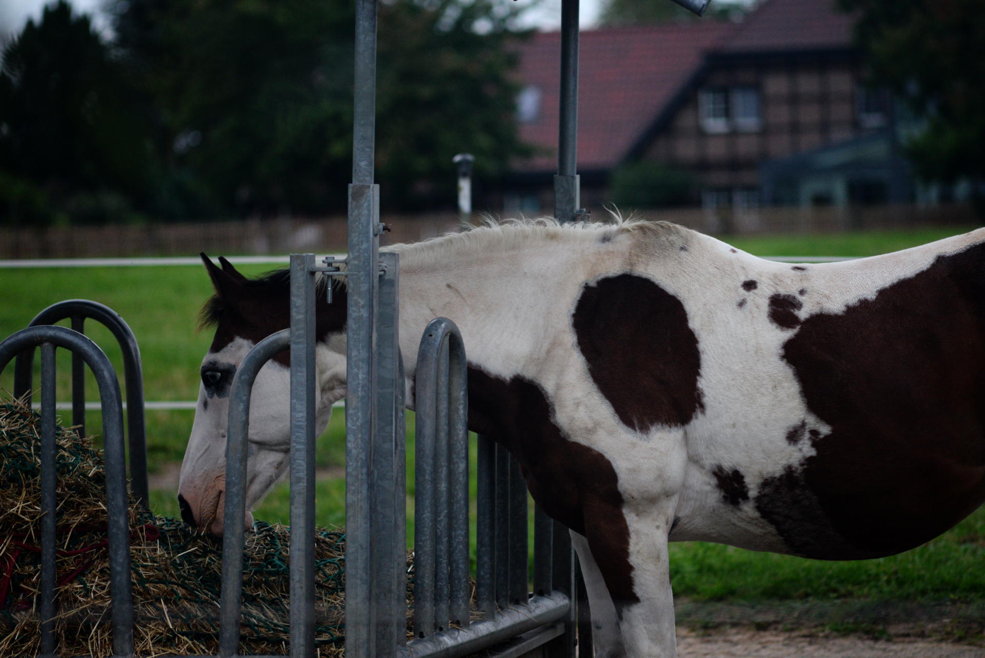Aber immerhin konnte ich vorher noch am Golfclub die Pferde fotografieren. Besonders hübsche Exemplare haben die da, finde ich. Besonders das eine, das so verkniffen guckt, weil ich es genau in dem Moment erwischt habe, wo es sich die Fliegen vom Leib schüttelt und gleichzeitig auf drei Grashalmen rum mümmelt!