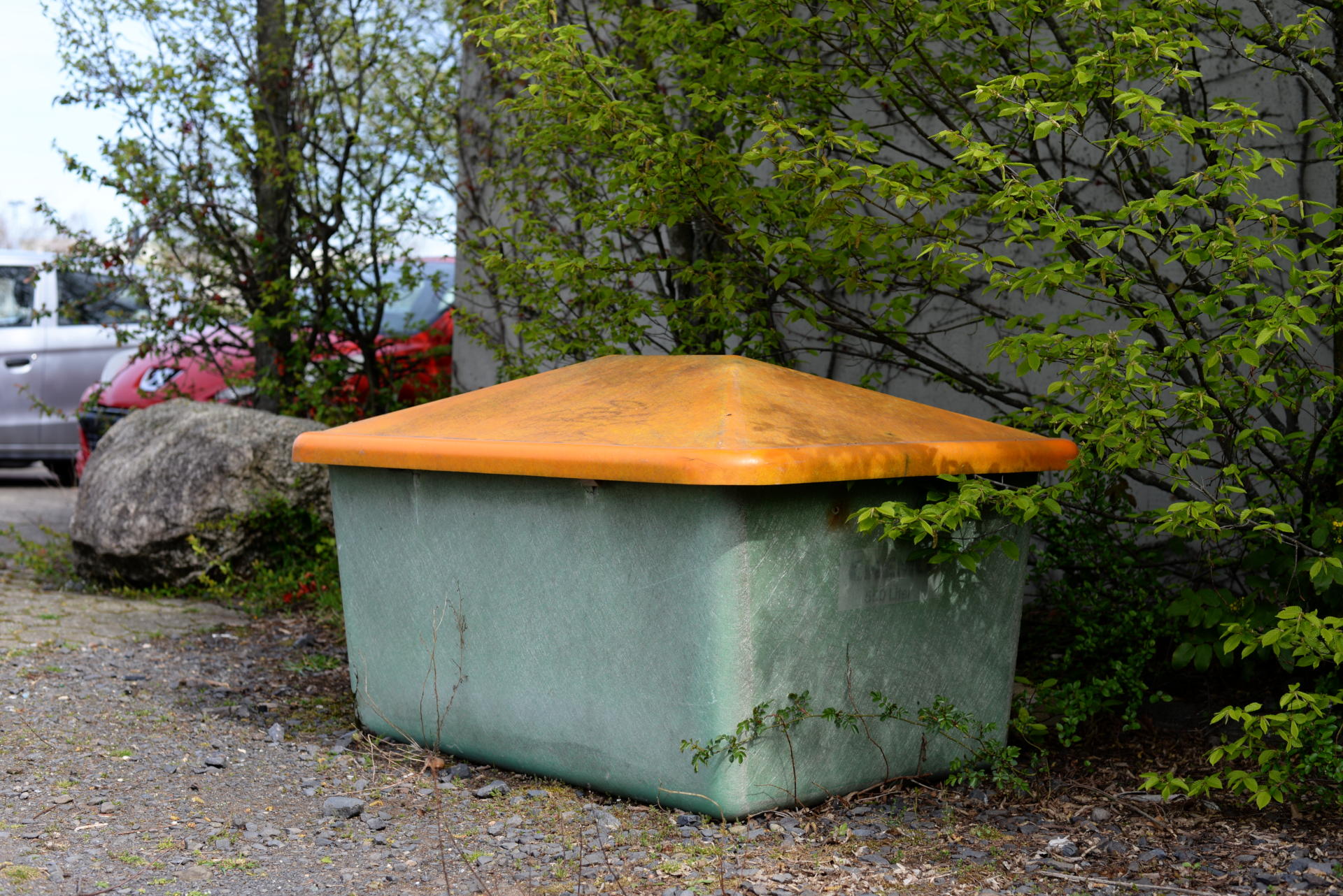 Abends dann wieder am Parkplatz und zum ersten Mal stand nicht direkt vor dem bunten Tag ein Auto, sodass ich es - wenn schon nicht frontal wie geplant - zumindest seitlich mitnehmen konnte. Amsel und Einkaufswagen waren dann nur noch Beifang.