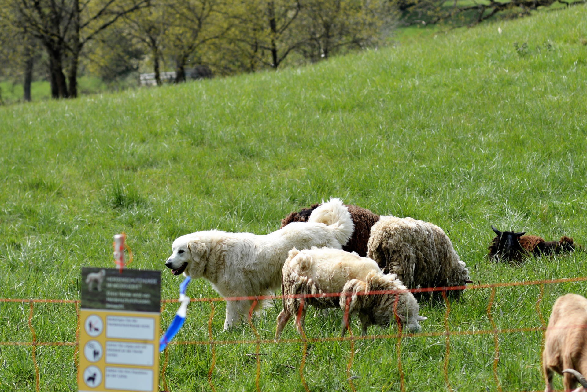 Dann wurde sich erstmal ausgiebig gekratzt, während ich die Schafe und die Beistell-Ziegen fotografiert habe. Bin auch nicht zu nah ran gegangen, damit die Hunde nicht doch noch ihrem Schutzinstinkt erliegen. Mit dem Tele kann man die Schafe ja auch so nah ran holen. Haben sich allerdings nicht so schön in Positur geworfen wie sonst schon mal und das blöde Orange vom Zaun stört auch ein bisschen, wenn man nicht so nah ran gehen kann.