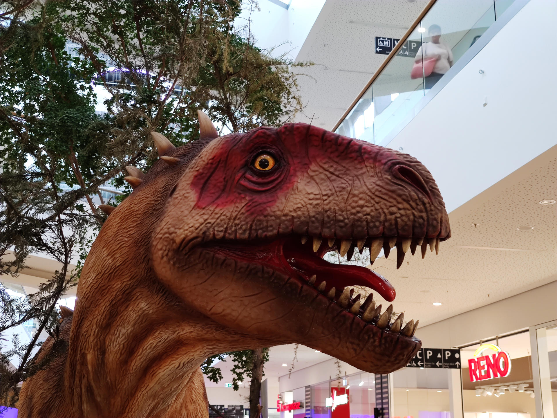 Da waren wir heute im Zoogeschäft, um kleine zirpende Viecher für meines Bruders kleine grüne Viecher zu kaufen, die ich Anfang nächster Woche verfüttern gehe, und da haben wir und gedacht: Auf dem Rückweg können wir ja ins Einkaufszentrum gehen und mal schauen, was es so neues gibt. Let's go to the mall und so. Und da steht draußen vor der Tür mal wieder der T. Rex rum und guckt die Einkäufer böse an. Und ich hab meine Kamera nicht dabei! Einmal hab ich meine Kamera nicht dabei! Mensch, Mensch, Mensch! Sind dann aber erstmal rein, weil wir uns ja umgucken wollten. Danach aber: Alles ausgestorbene Viehzeugs angeschaut, die wir finden konnten.