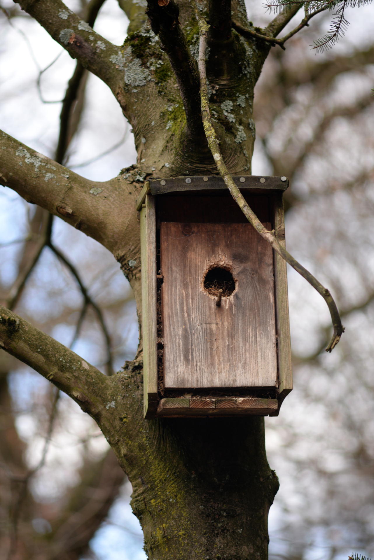 Deswegen habe ich dann auch mal in den Schatten hinein fotografiert und dieses sehr schöne Vogelhaus ist dabei heraus gekommen. (35mm, 1/125s, f/2.) Davon mal abgesehen, dass mir das Motiv und die Blendenbälle in den Blattlücken im Hintergrund extrem gefallen, zeigt der Film hier seine wirklichen Stärken: Satte Töne, deren kräftige Körnung dem ganzen Bild schon fast eine siebdruckartige Qualität verleiht. Trotzdem bleibt der Schärfeeindruck gut erhalten: Die Moosflecken auf dem Dach und die Kratzer an der Seite, die aufgerissene Borke, alles ist innerhalb des Fokus-Bereichs präzise und messerscharf abgebildet.