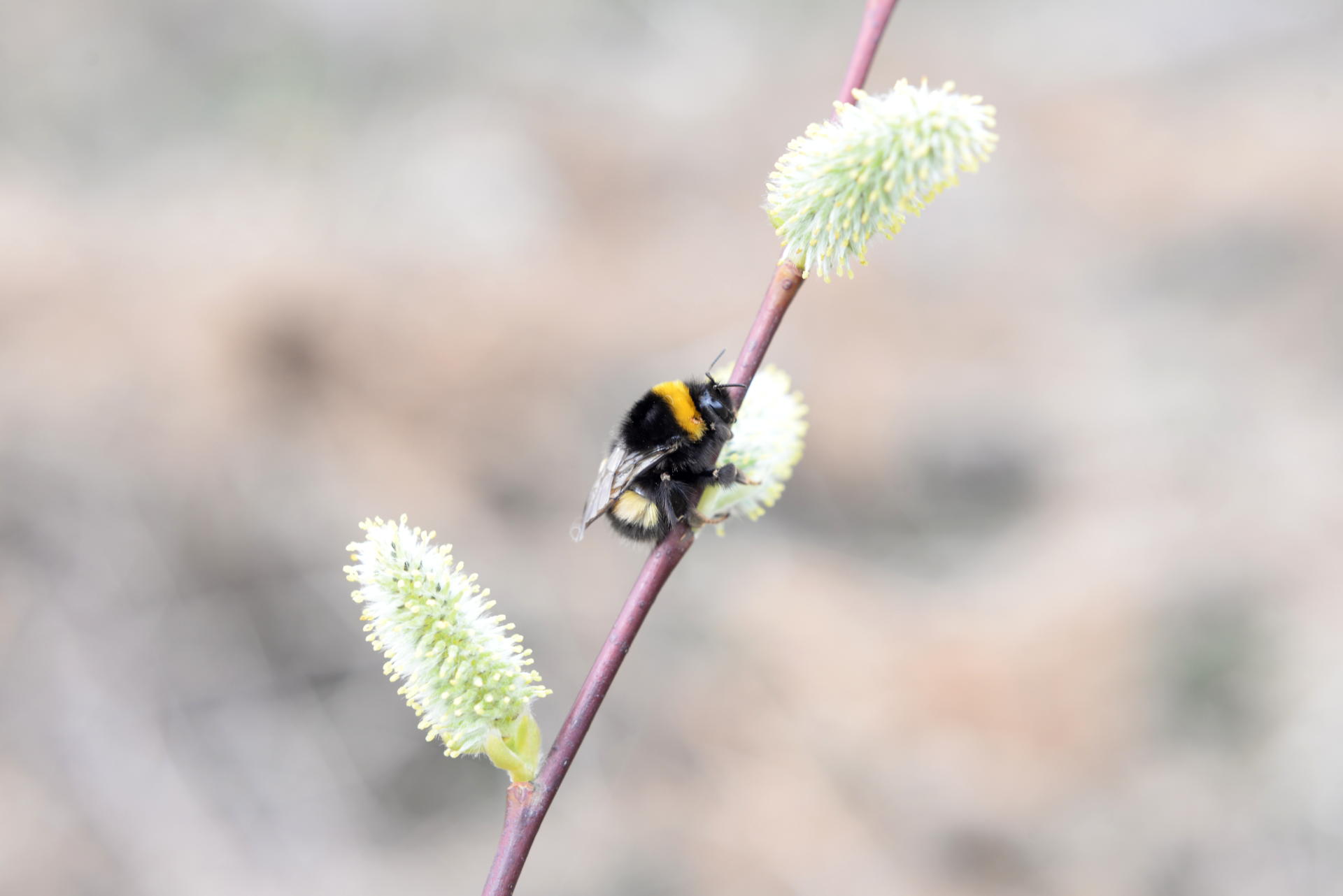 Besonders die Hummeln und die Wildbiene hatten es mir angetan. Es war zwar recht bedecktes Wetter, das bereits mit regen drohte, aber zugleich doch sehr warm, weil das Tief die Warmfront vor sich her schob. 16°C waren es, warm genug für alle möglichen Insekten. Aber diese beiden Sorten haben wir vor die Linse nehmen können, weil sie nicht so hektisch auf der Flucht waren. Die beiden waren damit beschäftigt, den frischen Saft aus den Blüten zu ziehen. Fleißig, fleißig.