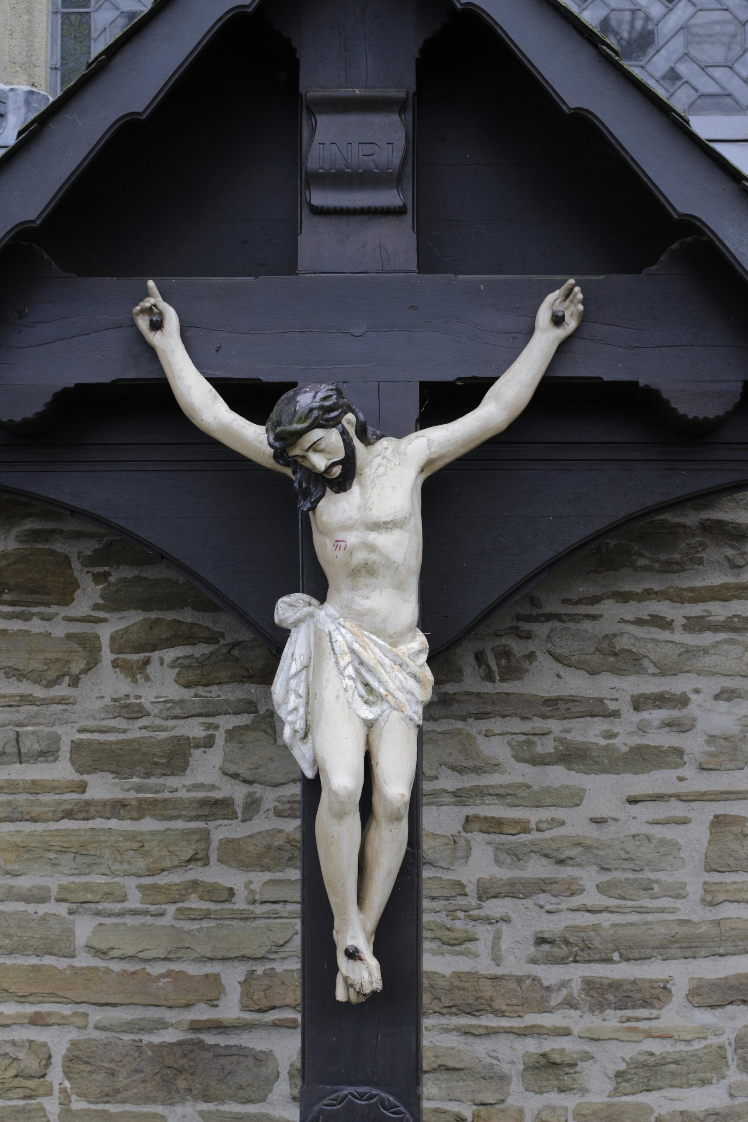 Stattdessen habe ich mich drum herum und außen ausgetobt. Da gibt es ja auch genug zu entdecken. Etwa diese Starkstrom-Steckdosen am Glühweinstand-Weihnachtsmarkt-Überbleibsel im Hinterhof. Und der Herr Jesus, der hier besonders plastisch am Kreuz hängt. Ich weiß, Kontrastprogramm.