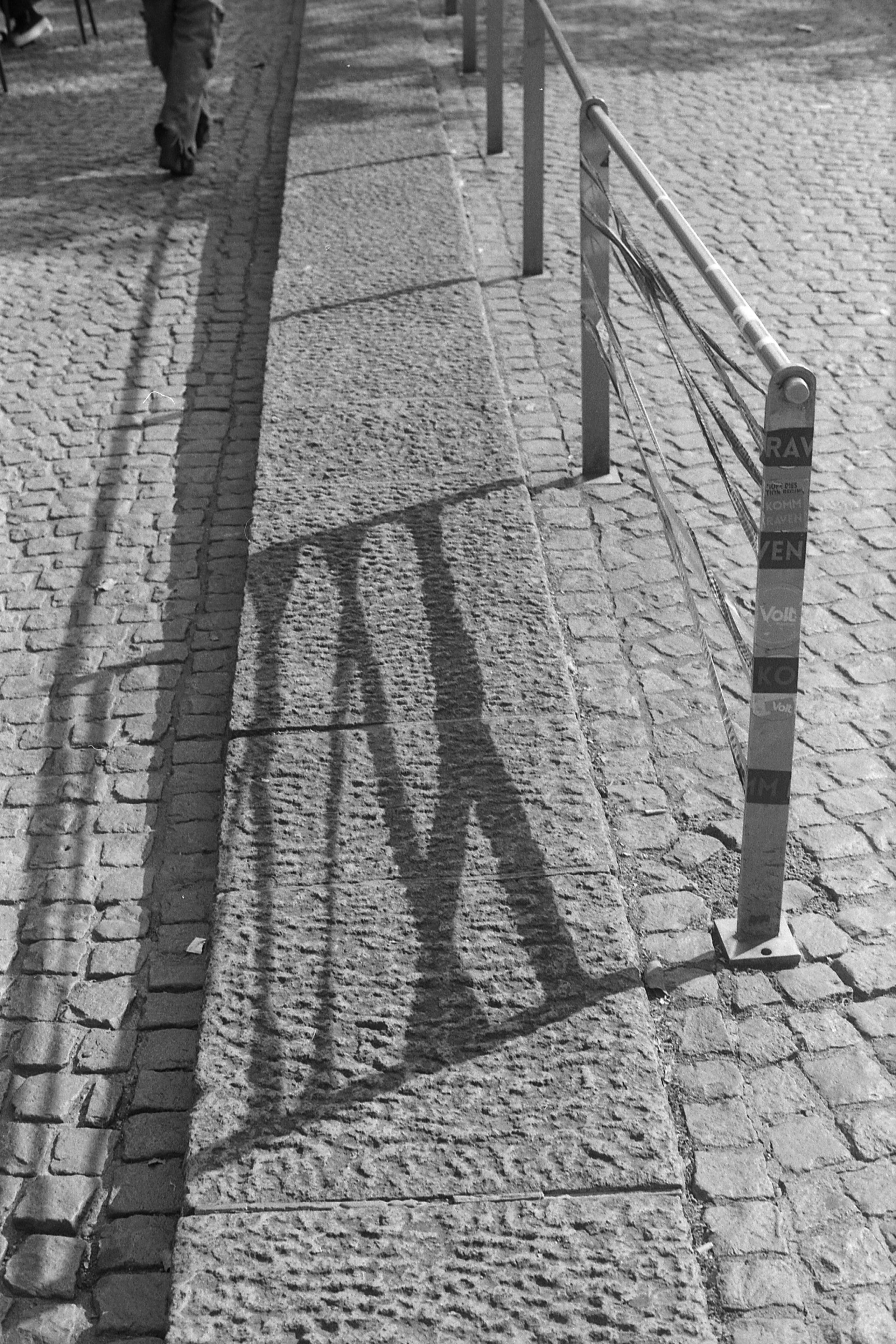 Hatte an dem Tag ansonsten wohl eine gewisse abstrakte Phase. Wobei, Licht und Schatten, das ist die Essenz der Fotografie, oder? (55mm, 1/60s, f/8.) Finde jedenfalls, die Art und Weise, wie sich der Schatten des Geländers hier abzeichnet, faszinierend. Und auch die Person, die oben am Rand aus dem Bild geht: Perfekt. Ich hab ja vielleicht einen komischen Geschmack und viele werden jetzt wieder Fragen, warum ich dafür ein Negativ verschwendet habe, aber.
